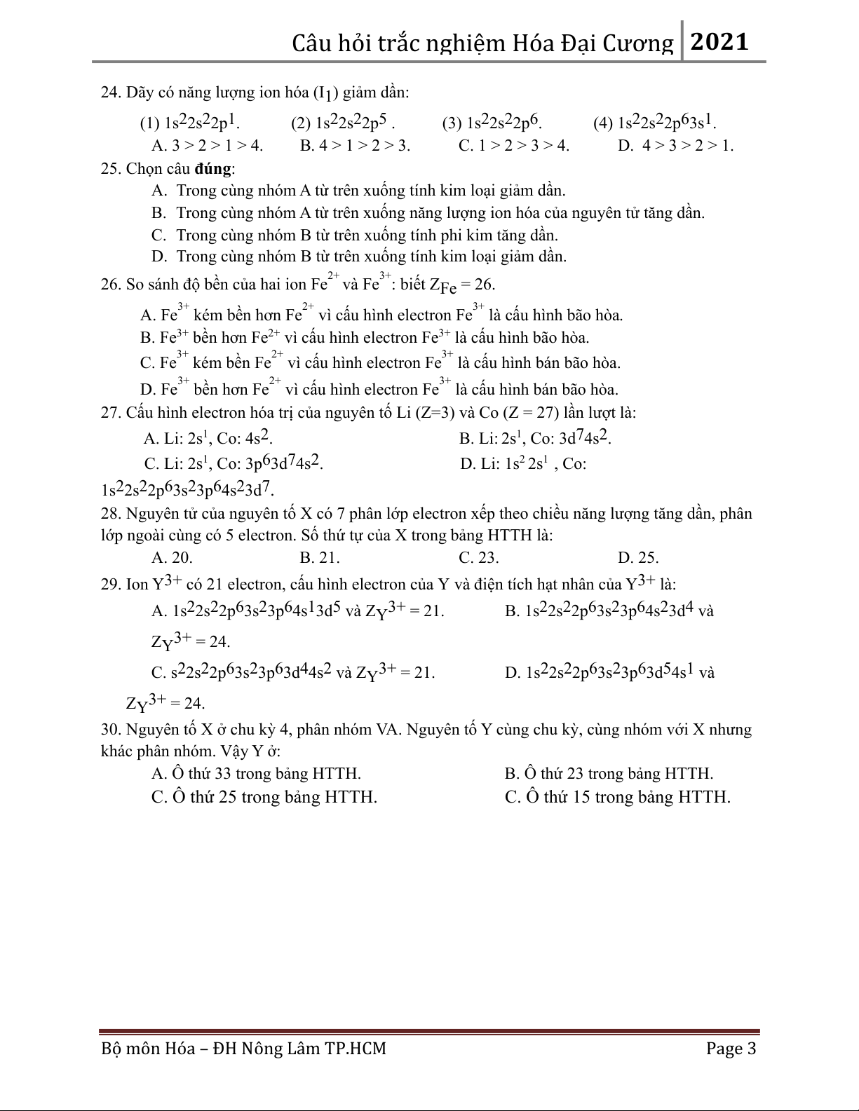 Bộ môn Hóa – ĐH Nông Lâm TP.HCM Page 3