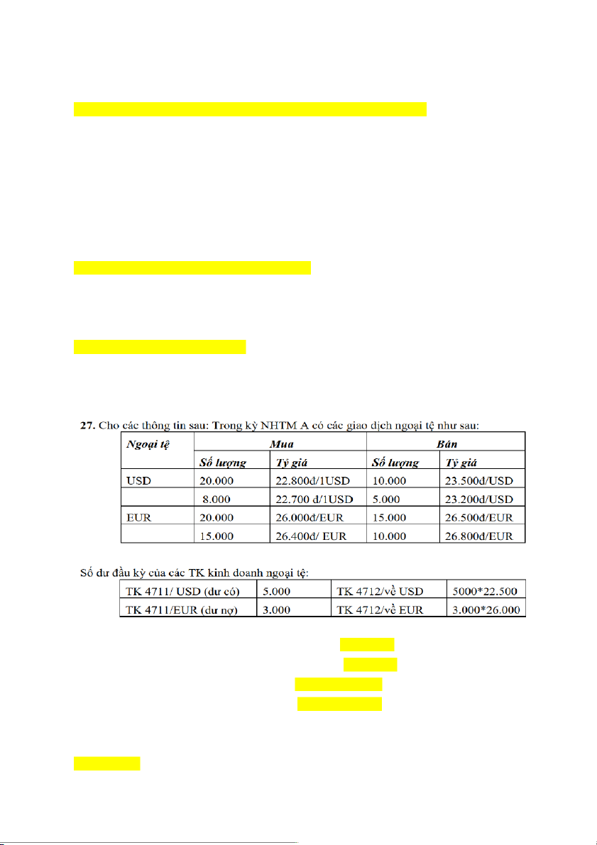 (vi) Nếu tỷ giá cuối kỳ trên thị trường LNH được NHNN công bố là 1EUR = 26.500 VND, NH sẽ hạch toán: a. Ghi nợ 631 c. Ghi nợ 821 b. Ghi có 631 d. Ghi có 721