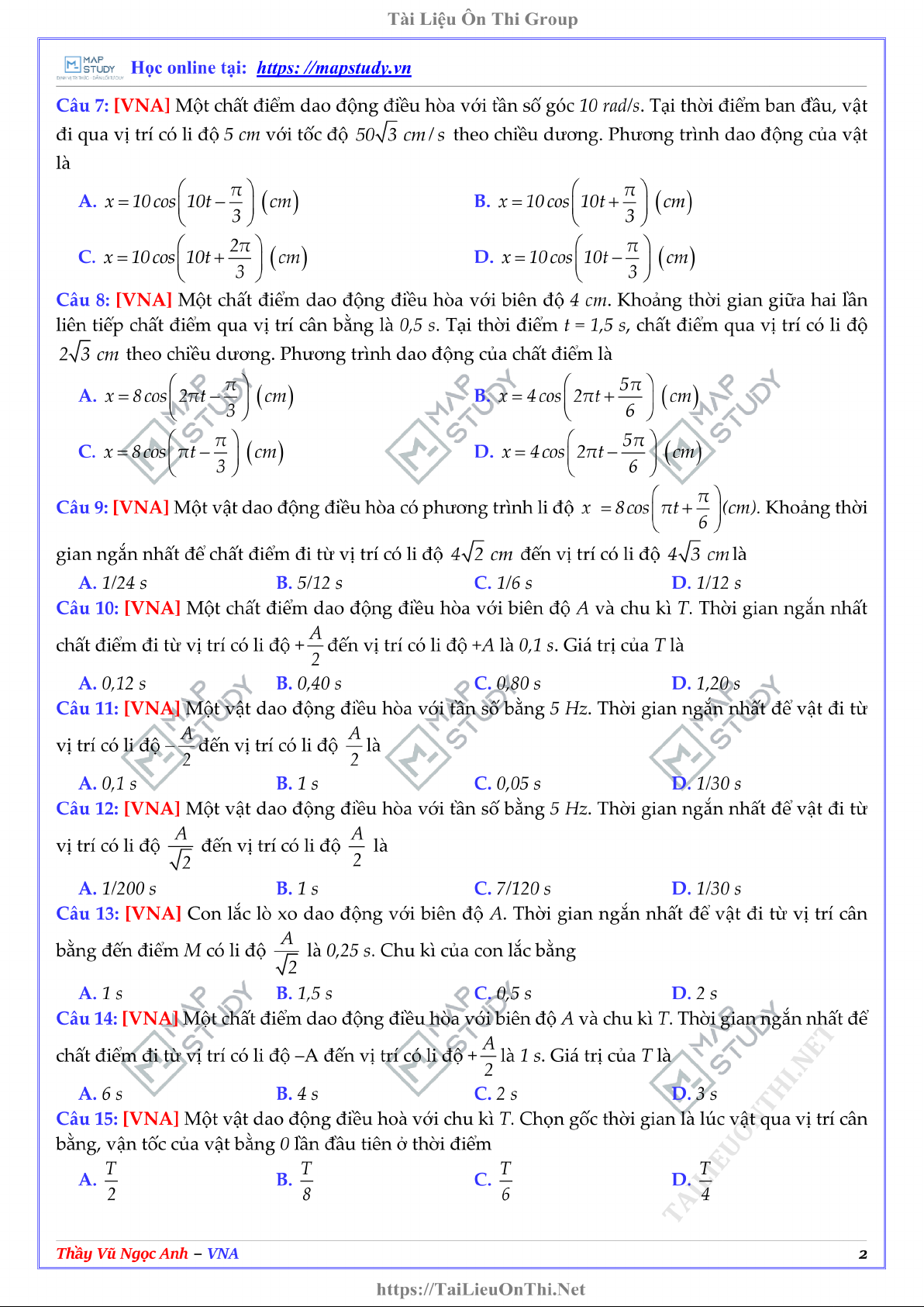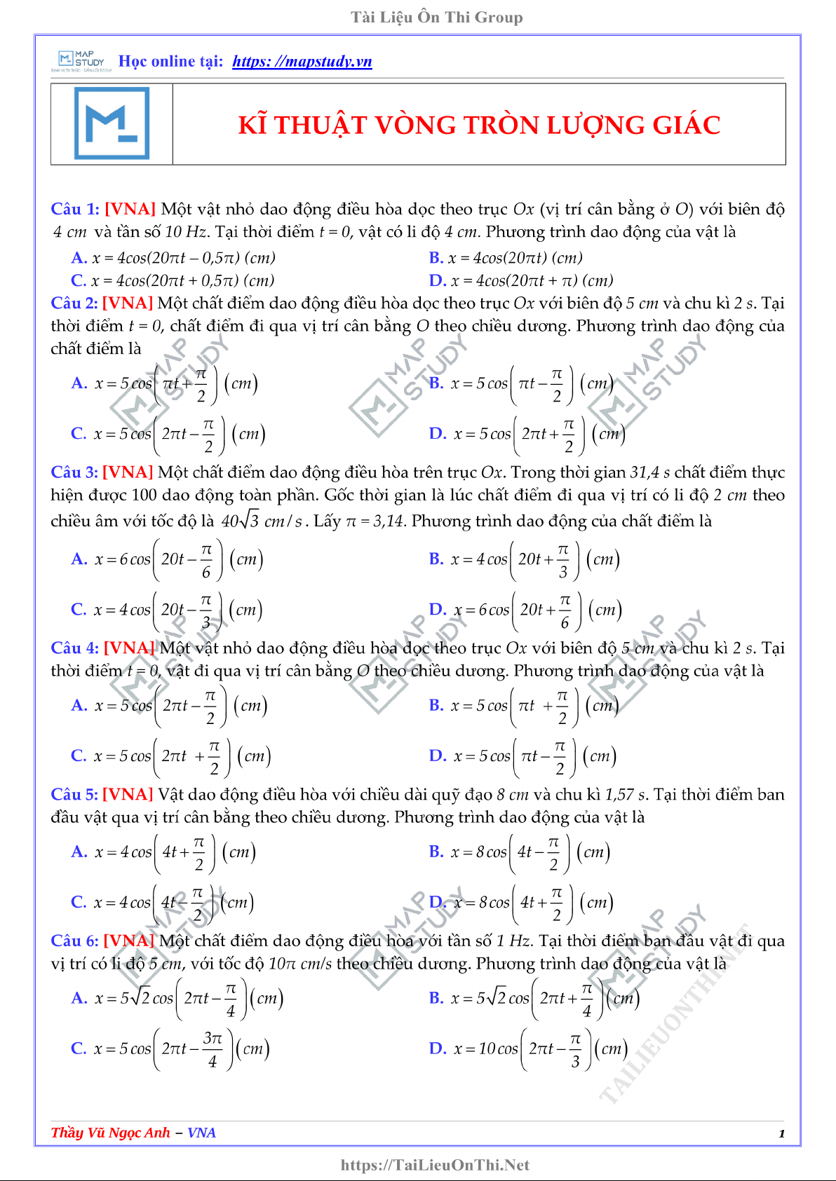 Câu hỏi trắc nghiệm Kĩ thuật vòng tròn lượng giác môn Vật lí 11. Tài liệu được sưu tầm giúp bạn tham khảo, ôn tập và đạt kết quả cao. Mời bạn đọc đón xem.
