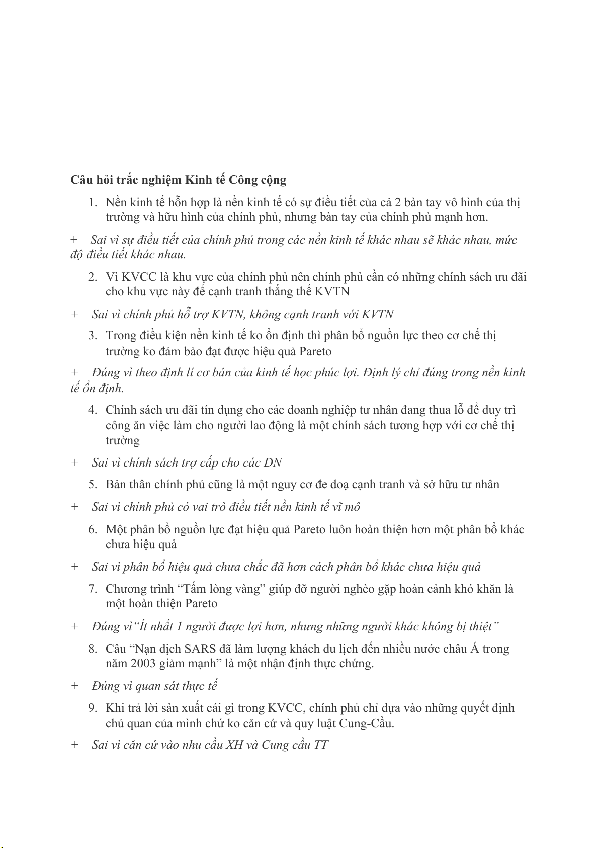 10. Chính phủ cần phải can thiệp vào mọi lĩnh vực của nền kinh tế để khắc phục