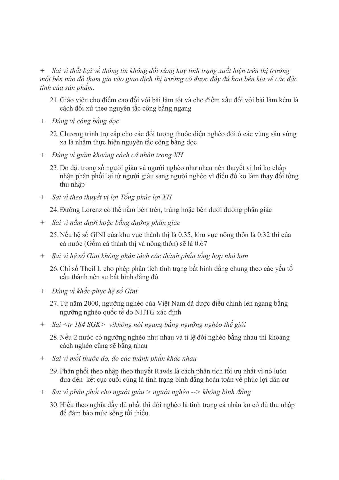 21. Nếu phân phối lại theo lý thuyết cực đại thấp nhất thì khoảng cách giàu nghèo luôn được rút ngắn.