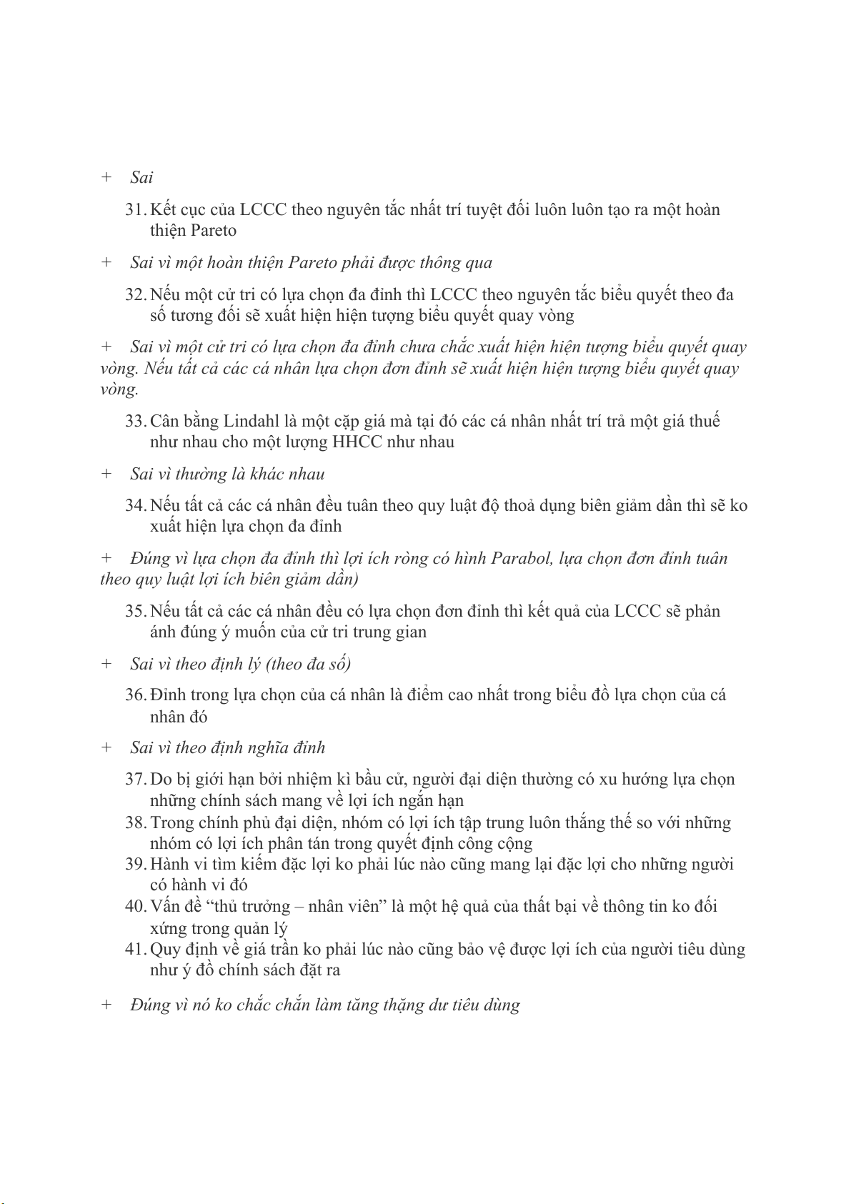31. Kết cục của LCCC theo nguyên tắc nhất trí tuyệt đối luôn luôn tạo ra một hoàn thiện Pareto