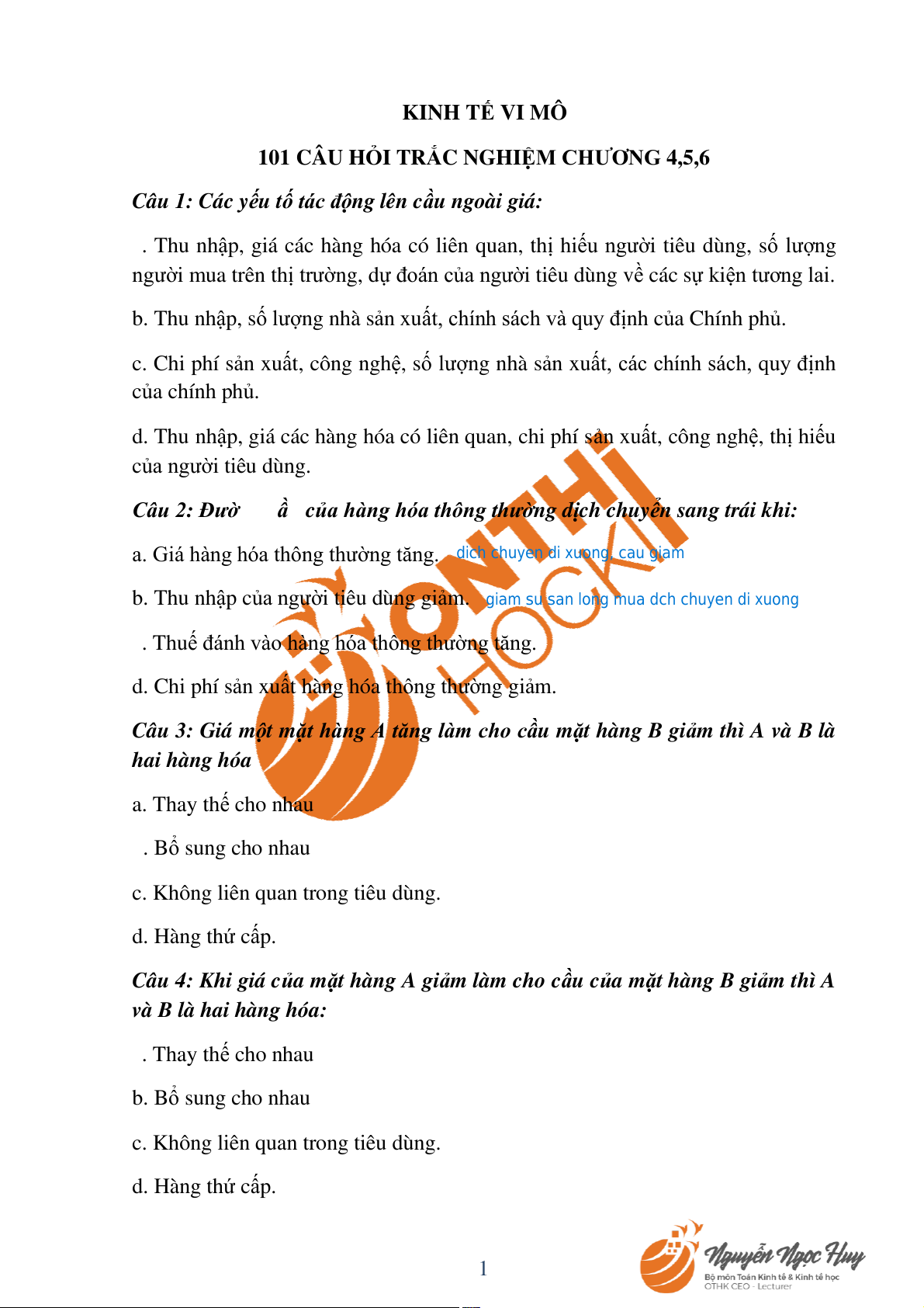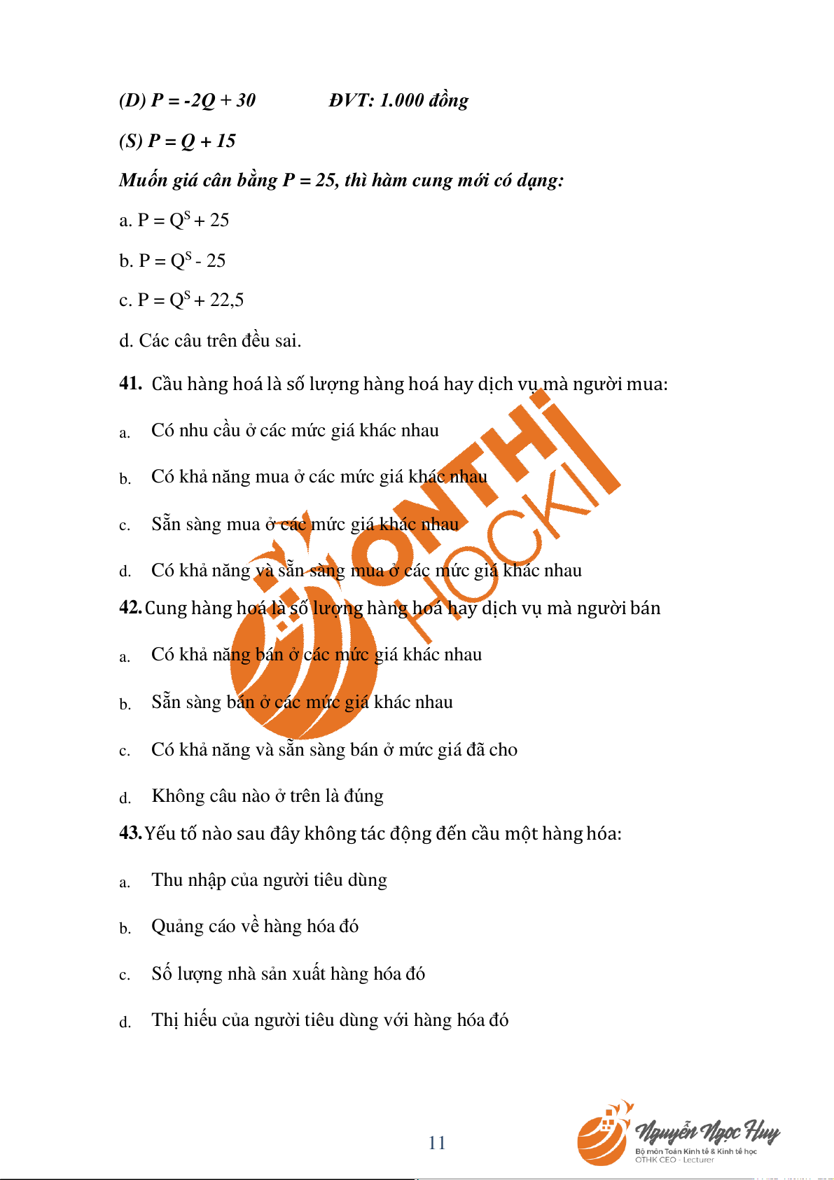d. Thu nhập, giá các hàng hóa có liên quan, chi phí sản xuất, công nghệ, thị hiếu của người tiêu dùng. Câu 2: Đườ