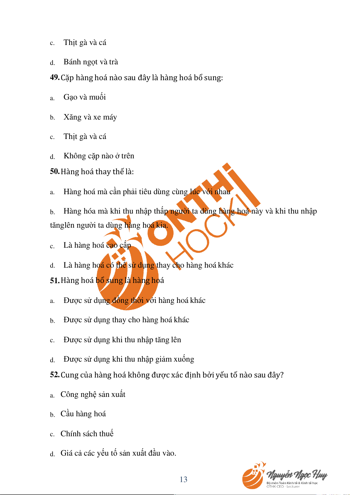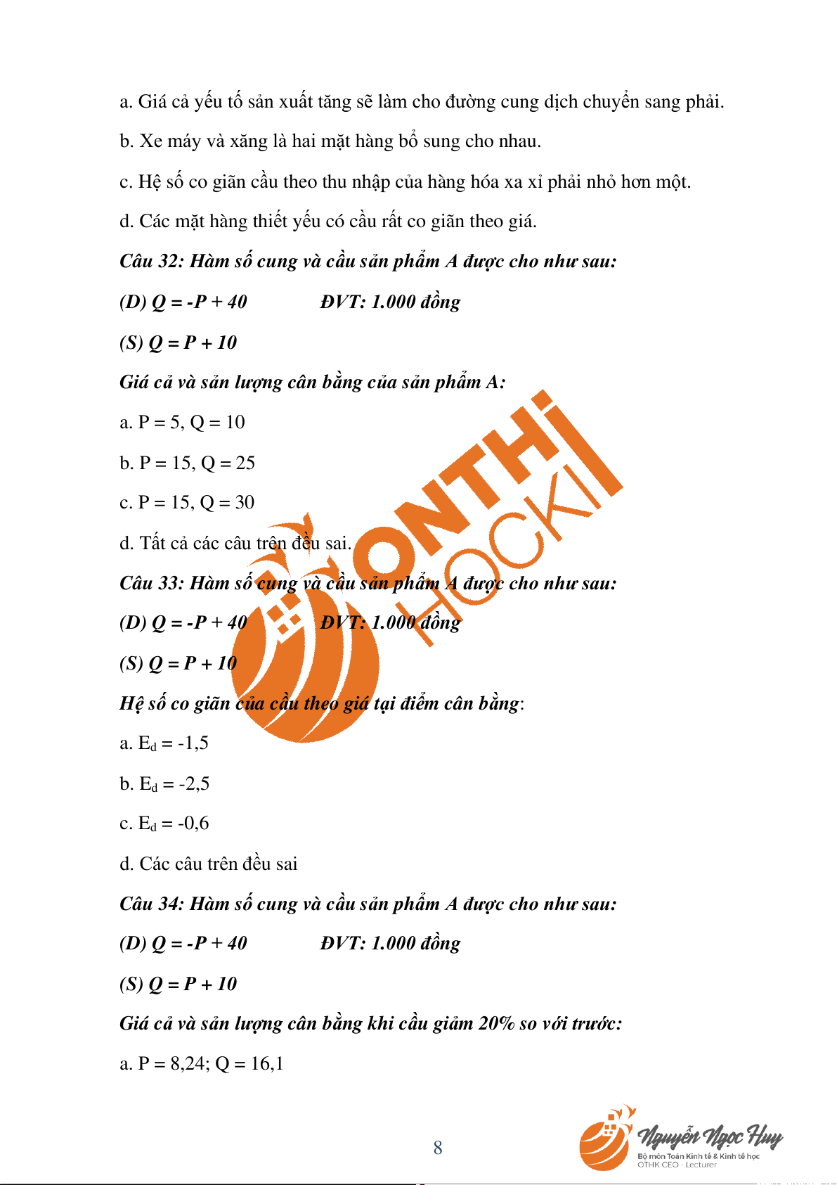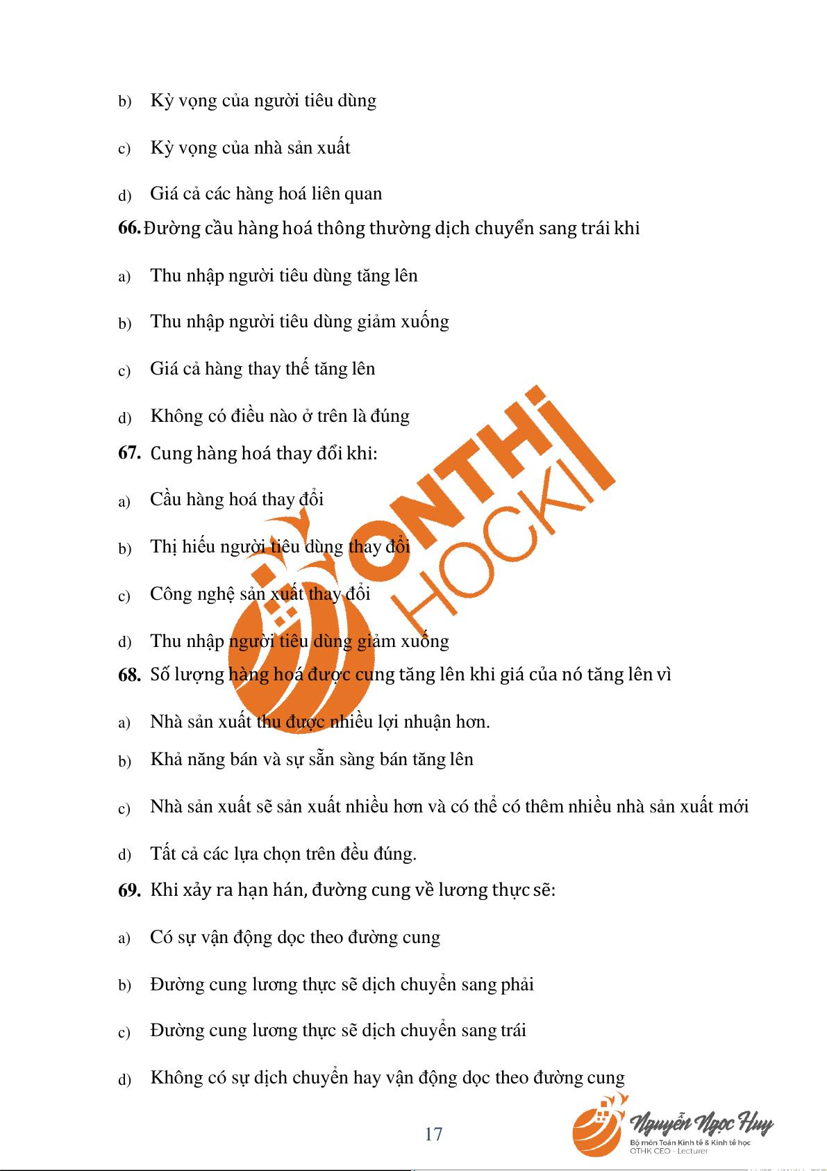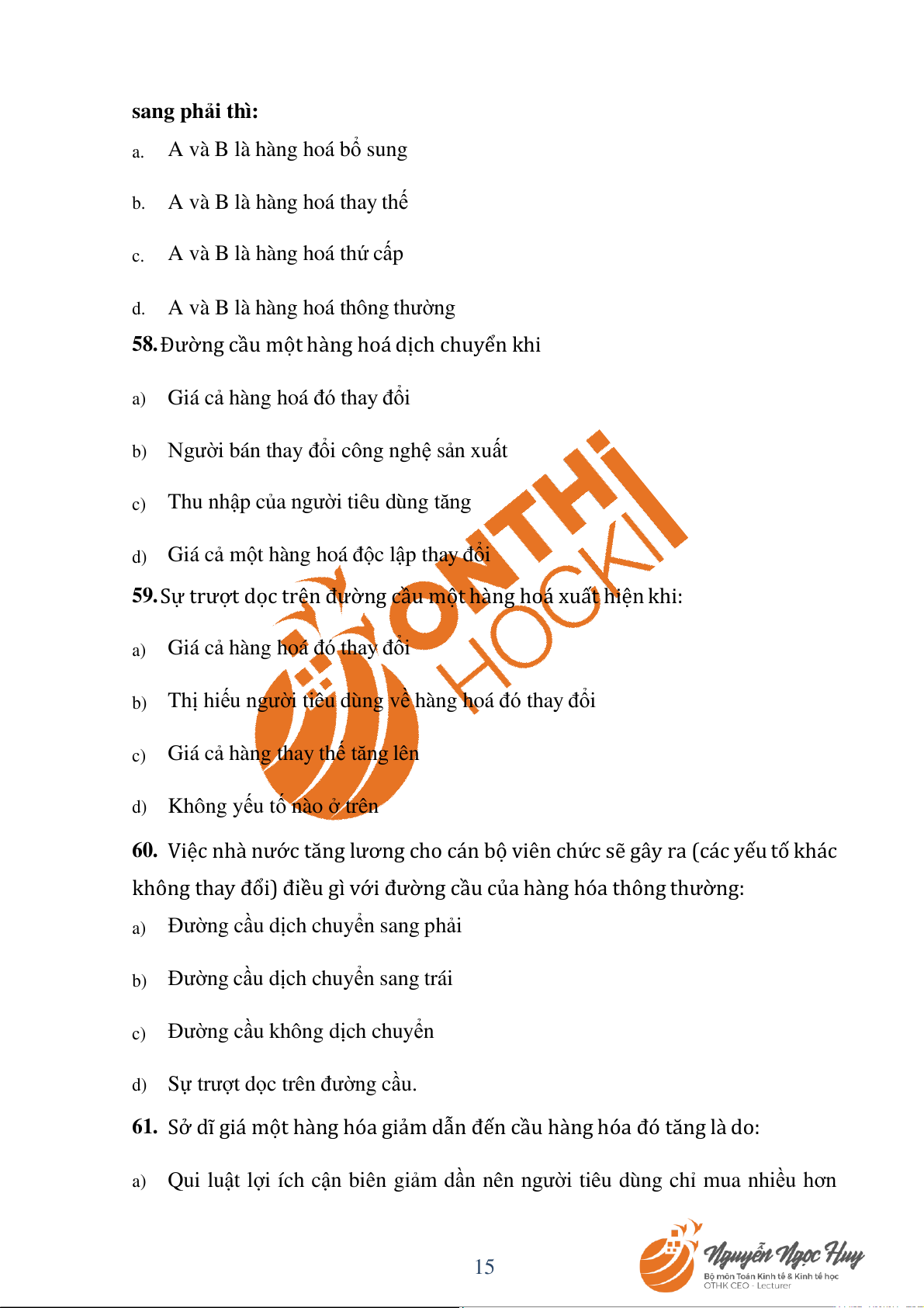 Câu 12: Khi thu nhập của người tiêu dùng tăng lên 30% khối lượng tiêu thụ