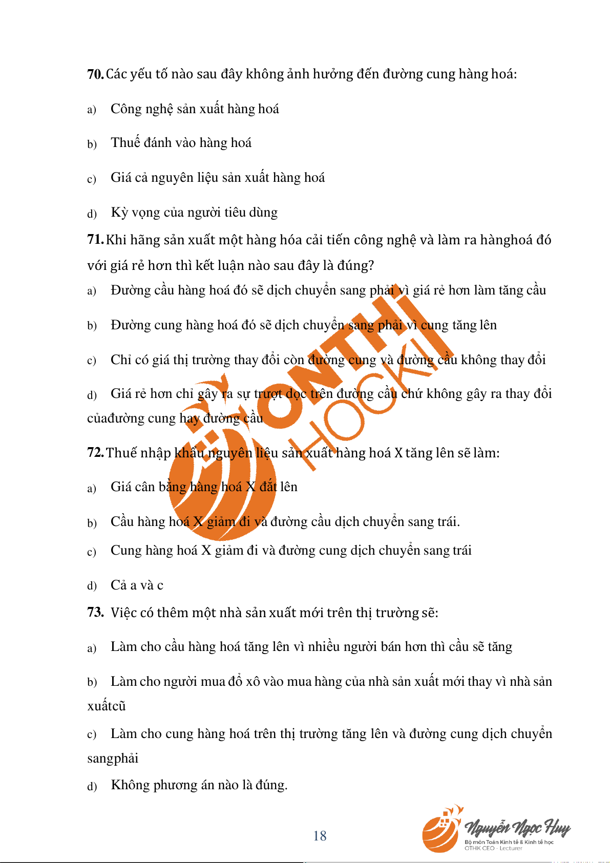 70. Các yếu tố nào sau đây không ảnh hưởng đến đường cung hàng hoá: