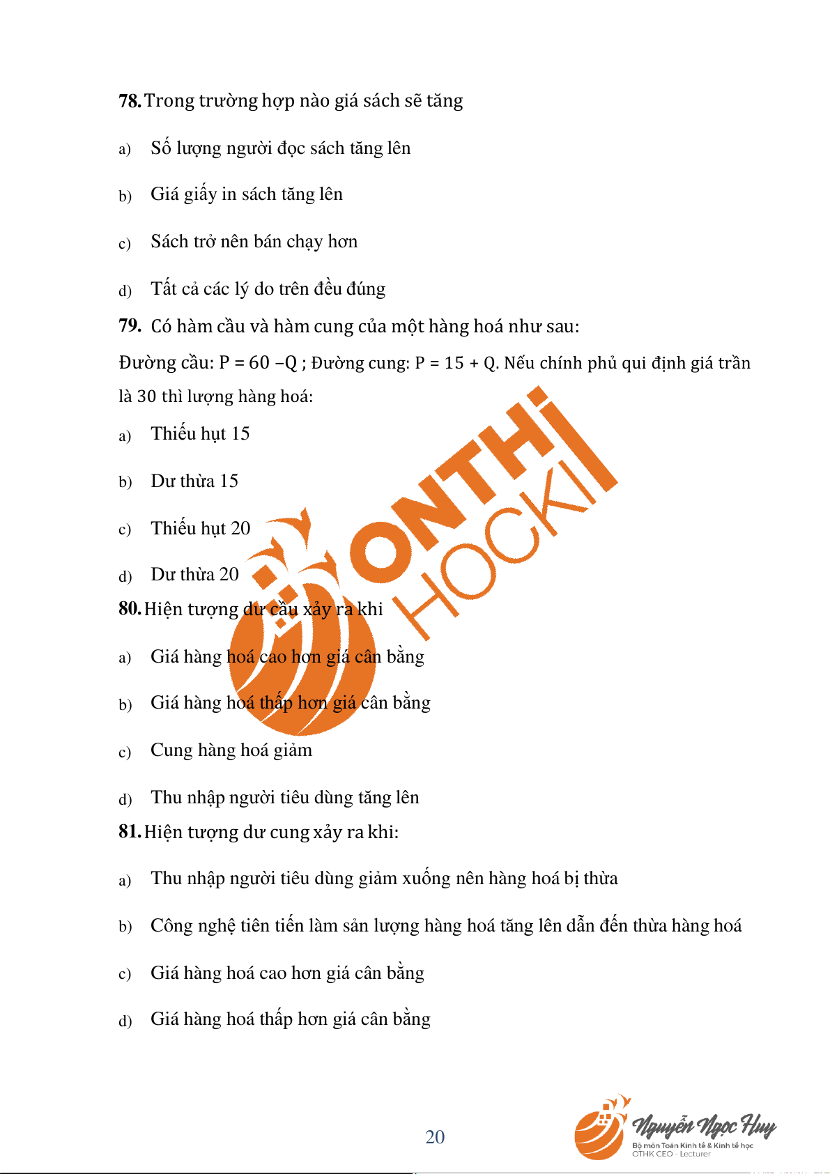 d) Giá hàng hoá thấp hơn giá cân bằng 20