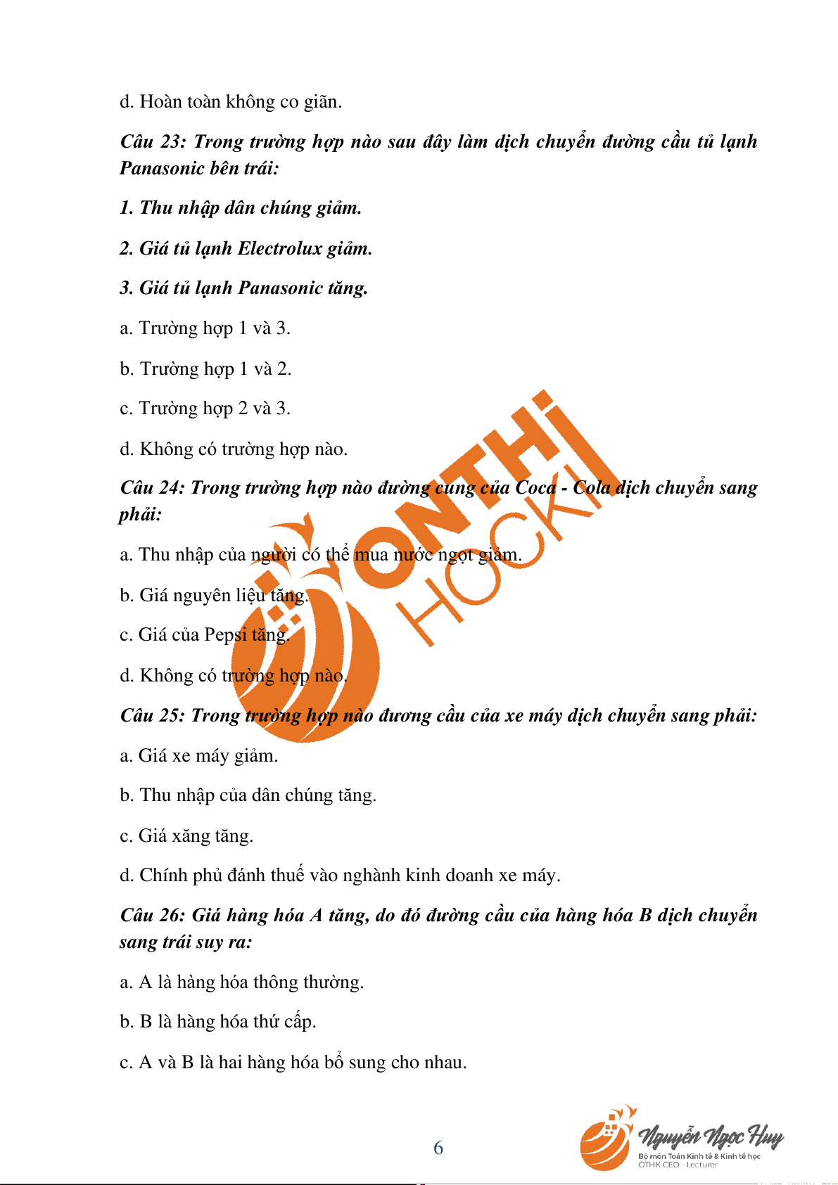 Câu 25: Trong trường hợp nào đương cầu của xe máy dịch chuyển sang phải: a. Giá xe máy giảm.