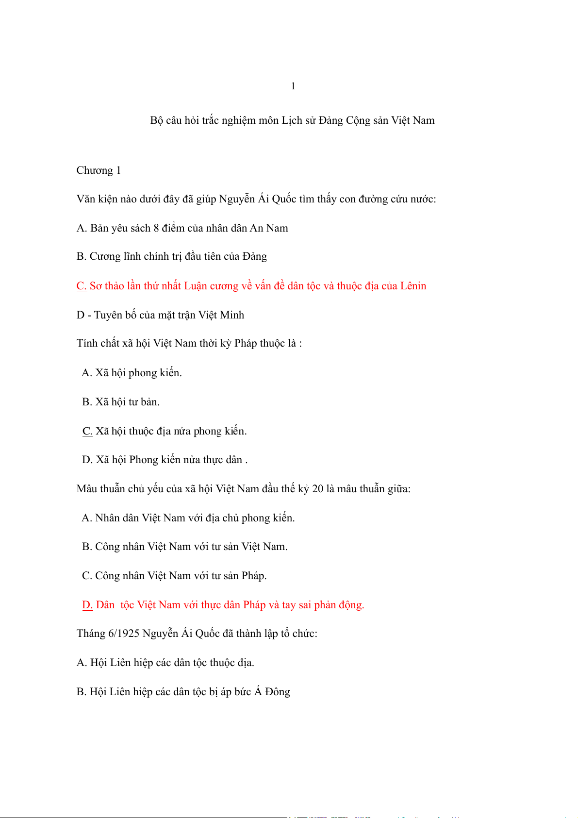 ắc nghiệm môn Lịch sử ng C Đả ộng sản Việt Nam Chương 1
