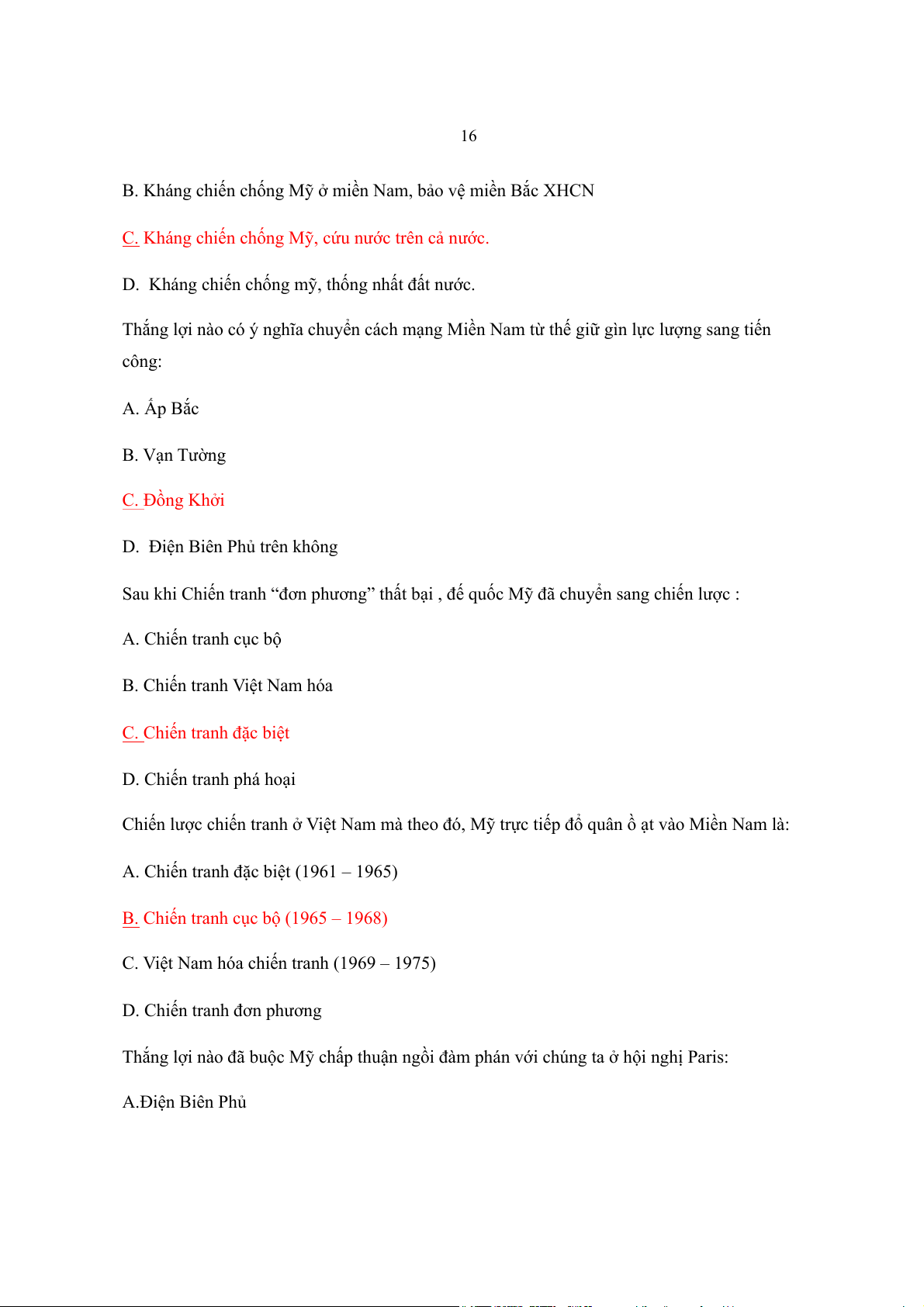 Thắng lợi quyết định buộc Mỹ phải ký hiệp định Paris (1/1973) là: A. Đồng Khởi B. Ấp Bắc C. Mậu Thân