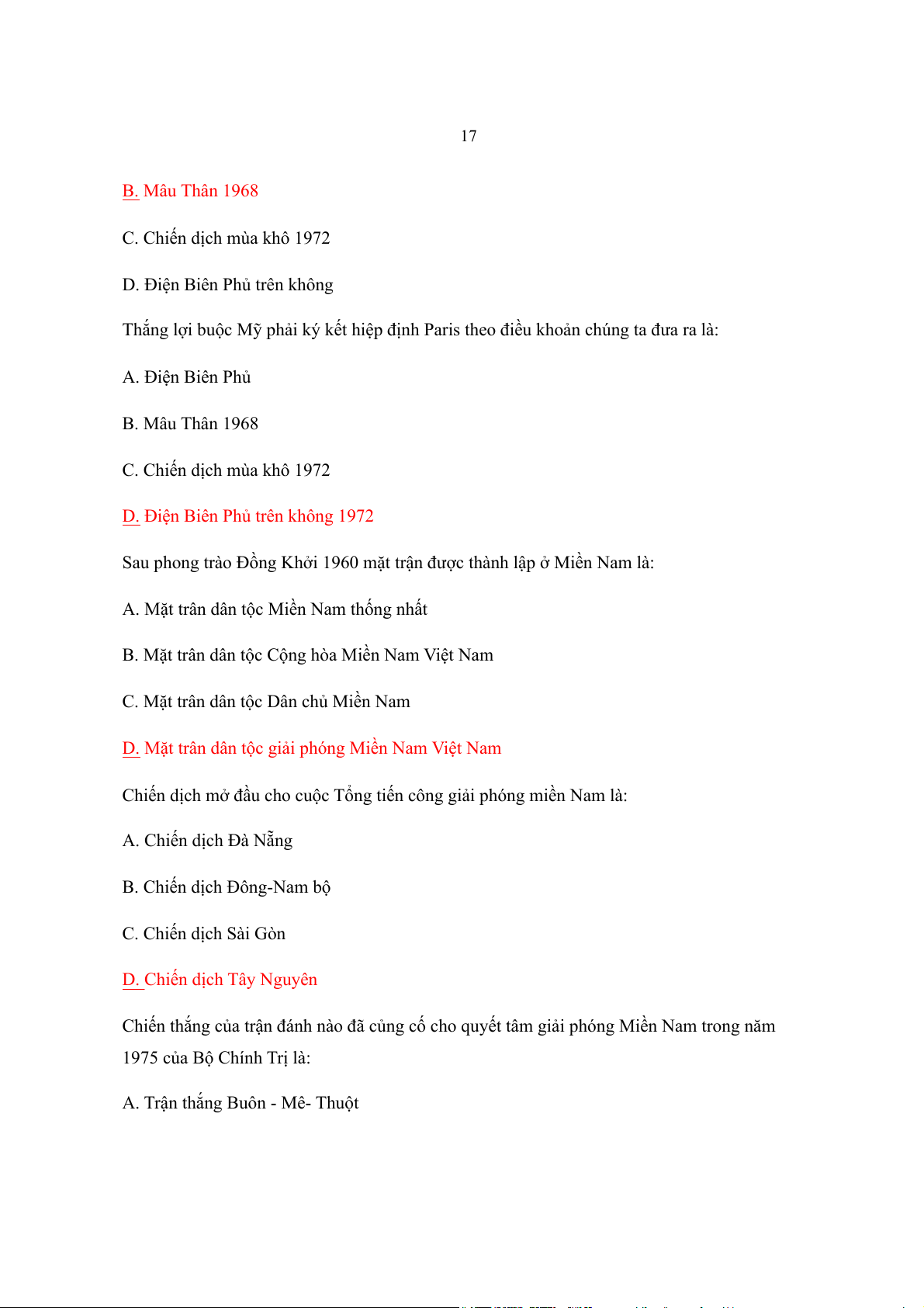 A. Trận thắng Buôn - Mê- Thu t ộ 18 B. Trận th -Nam b ắng Đông ộ