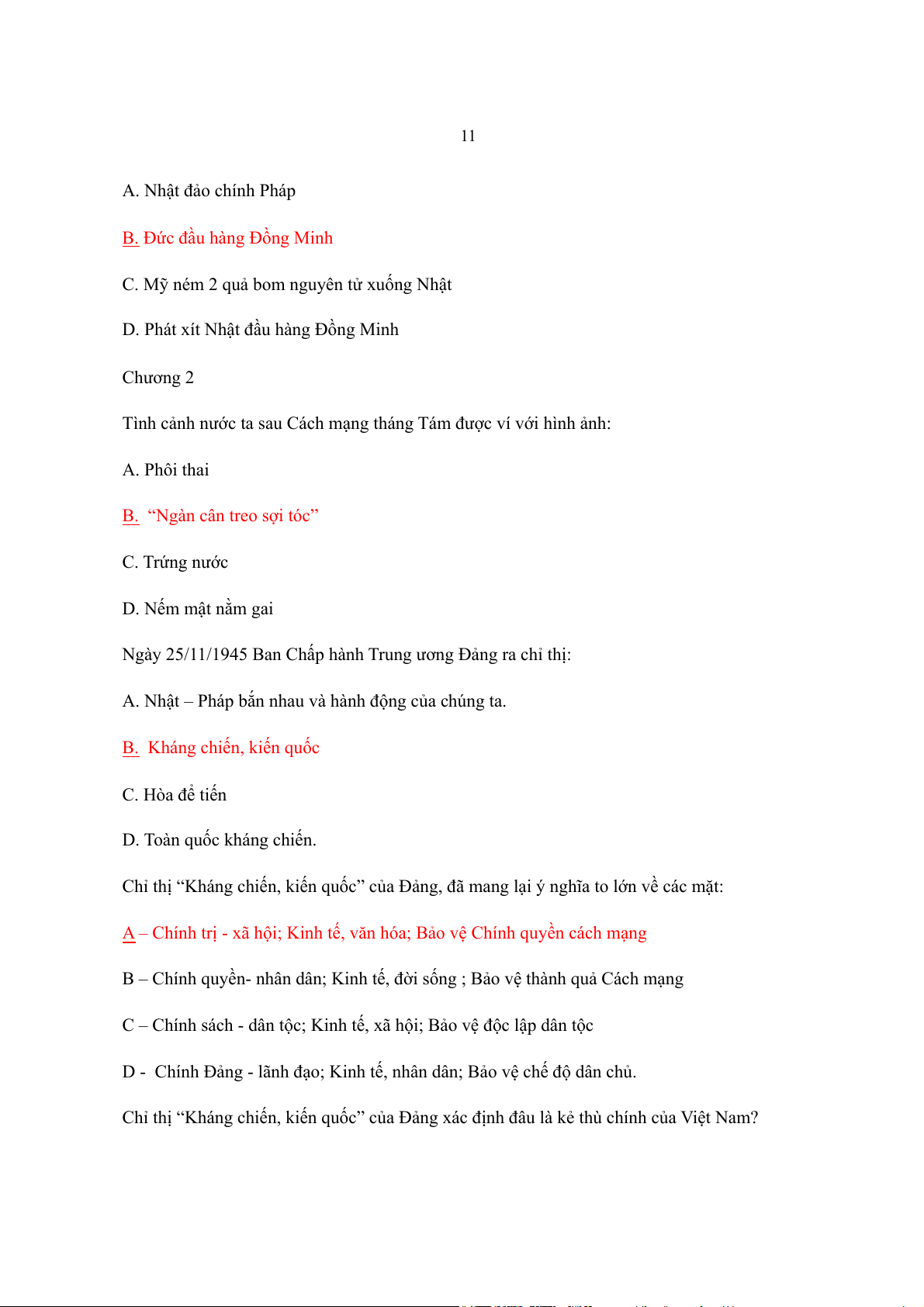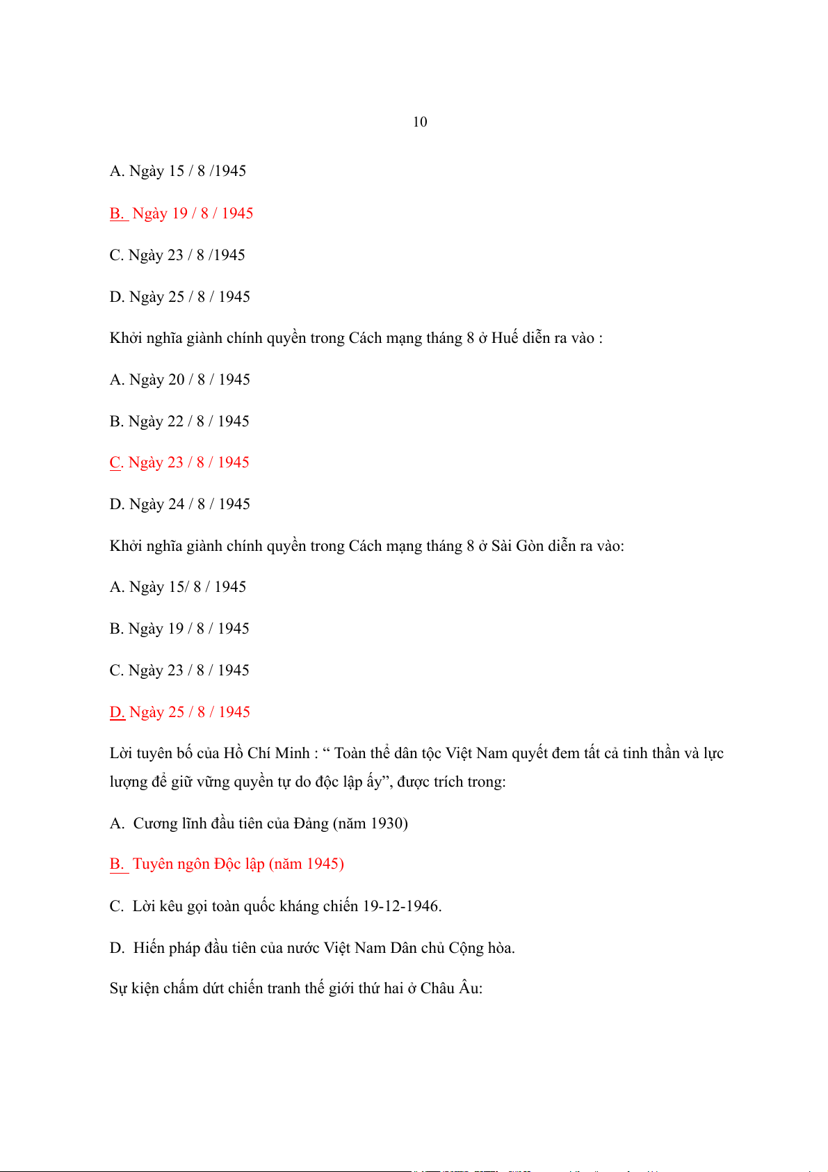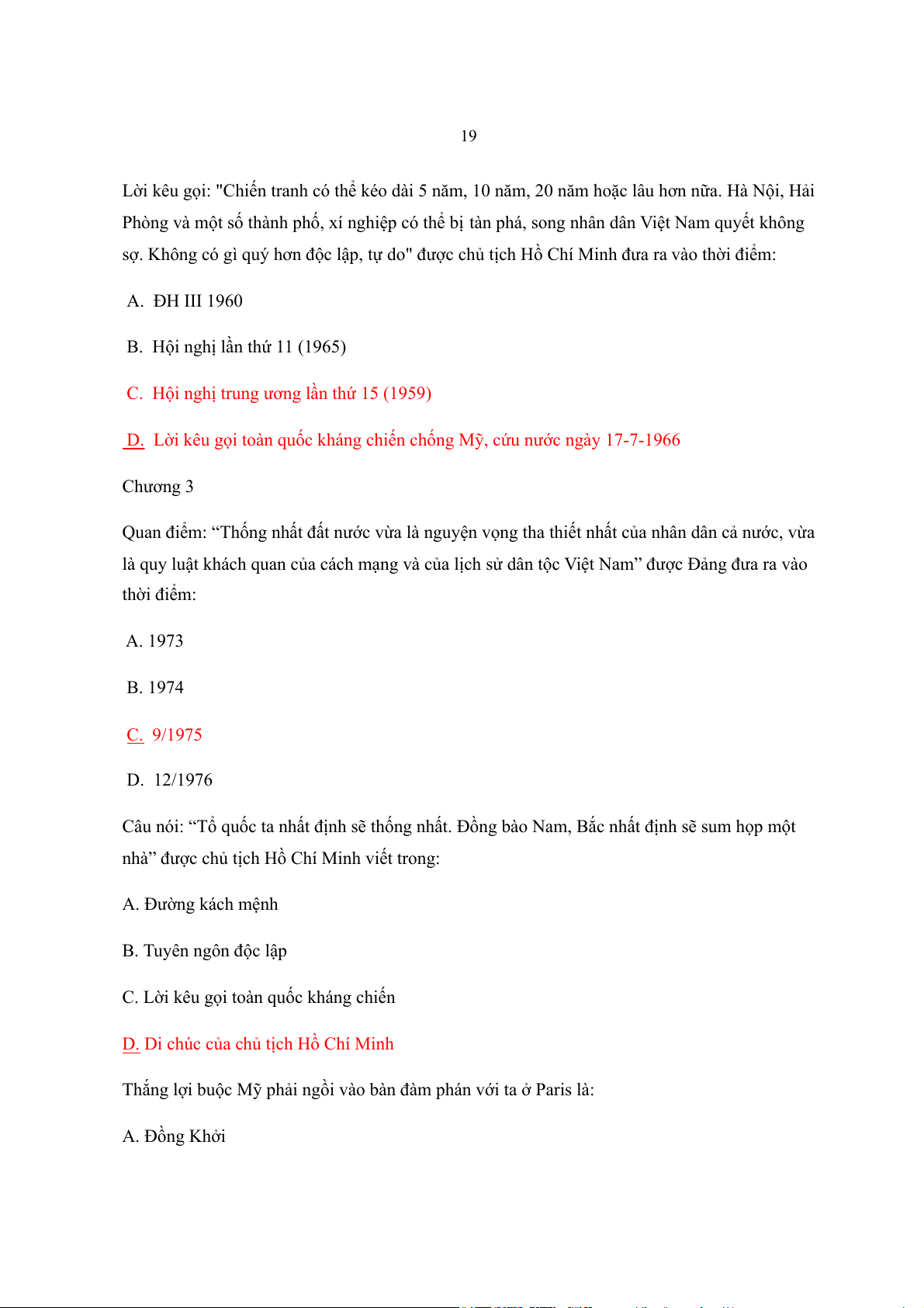 ất. Đồng bào Nam, Bắc nhất định sẽ sum h p m ọ t ộ nhà” đượ ủ c ch tị ồ ch H Chí Minh viết trong: A. Đường kách mệnh B. Tuyên ngôn độc lập C. Lời kêu g i toàn qu ọ ốc kháng chiến D. Di chúc của ch t ủ ịch H Chí Minh ồ