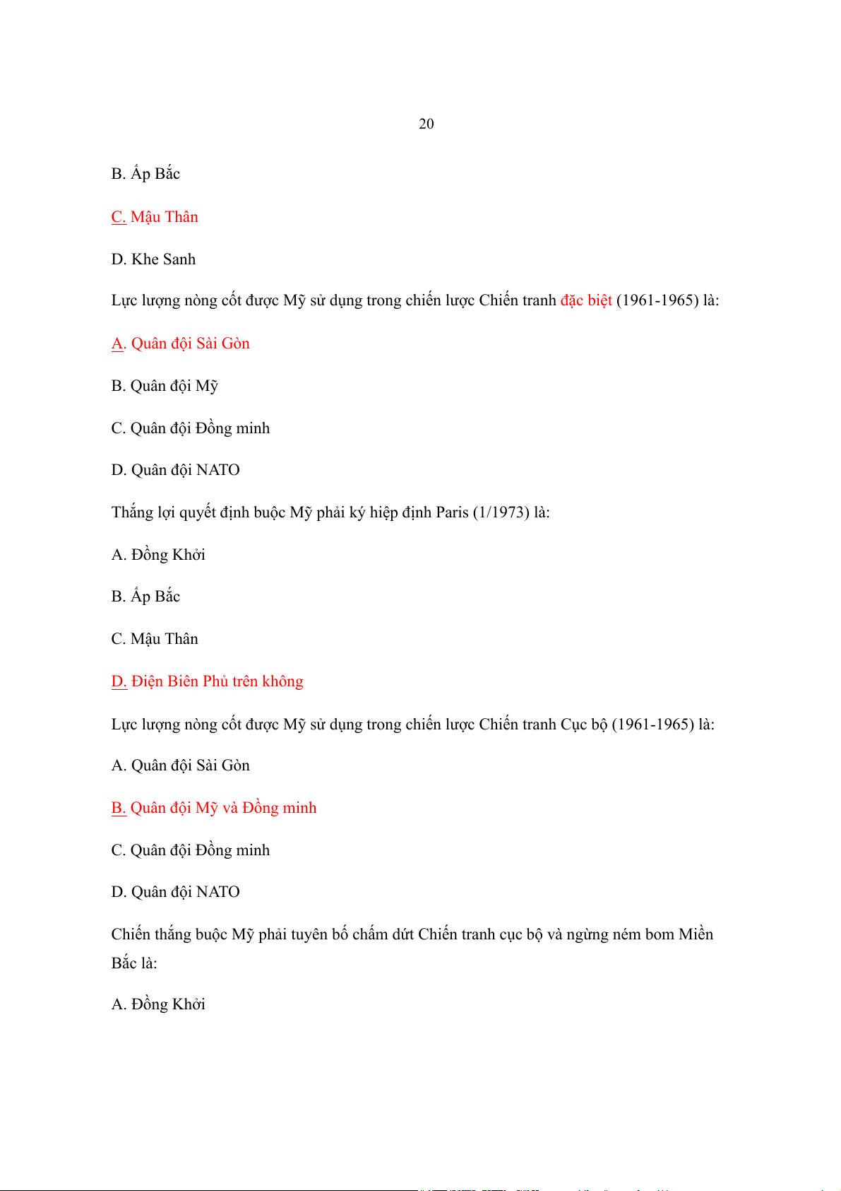 Thắng lợi buộc Mỹ phải ngồi vào bàn đàm phán với ta ở Paris là: A. Đồng Khởi 20 B. Ấp Bắc C. Mậu Thân D. Khe Sanh