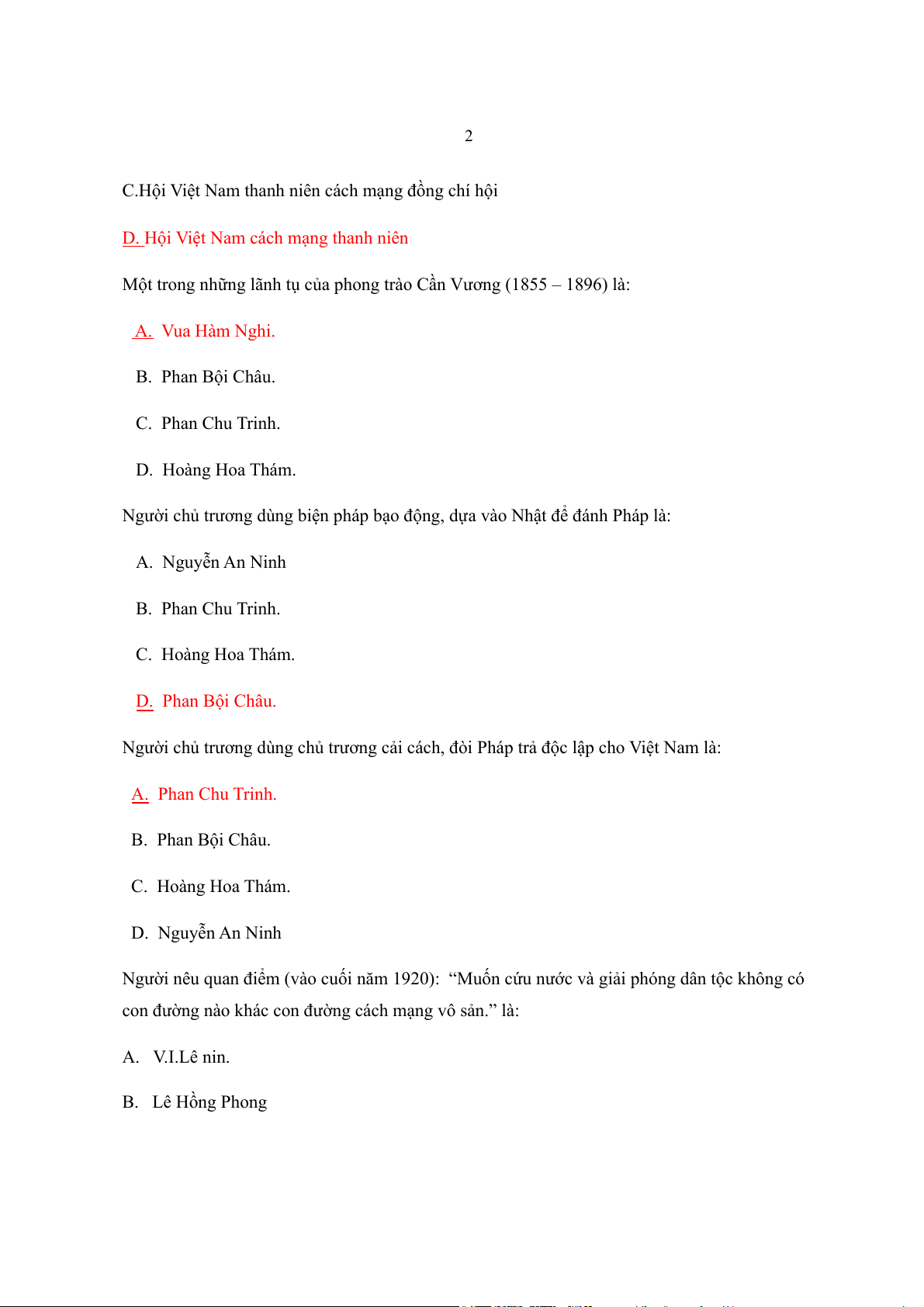 con đường nào khác con đường cách mạng vô sản.” là: A. V.I.Lê nin. B. Lê H ng Phong ồ 3 C. Nguyễn Ái Quốc. D. Trần Phú.