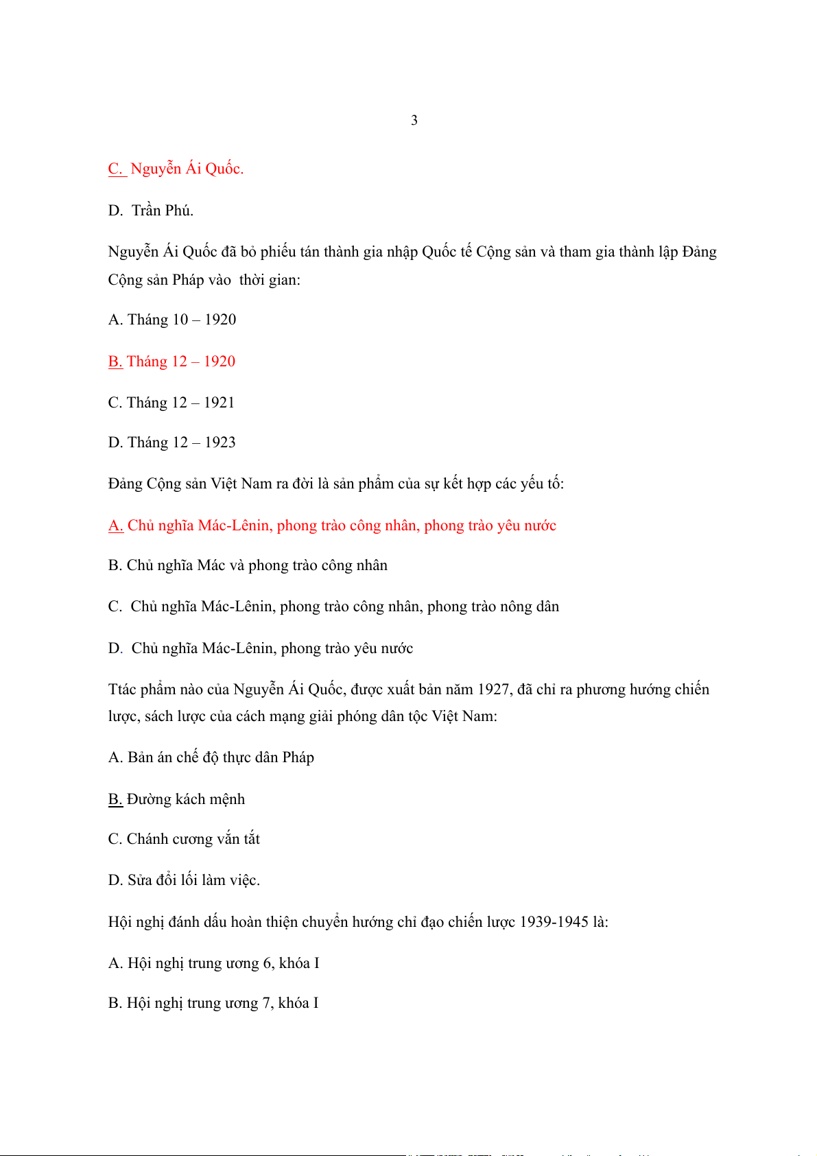 Cộng sản Pháp vào thời gian: A. Tháng 10 1920 – B. Tháng 12 1920 – C. Tháng 12 1921 – D. Tháng 12 1923 – Đả ộ ng C ng sản V ệ i t Nam ra đờ ả i là s ẩ n ph m của sự ế k t hợp các yếu t : ố A. Ch