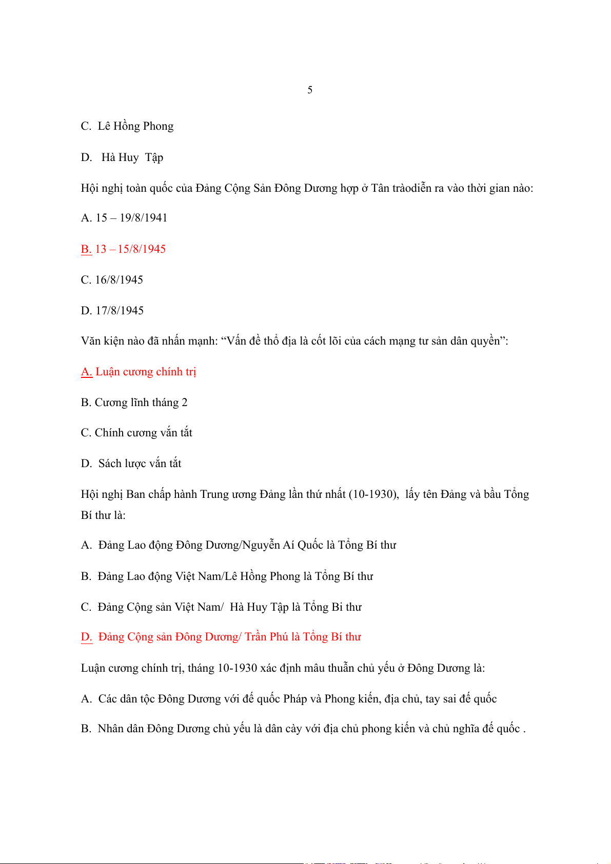 Người soạn Cương lĩnh chính trị đầu tiên của Đảng là: A. Trần Phú B. Nguyễn Ái quốc 5 C. Lê H ng Phong ồ D. Hà Huy Tập