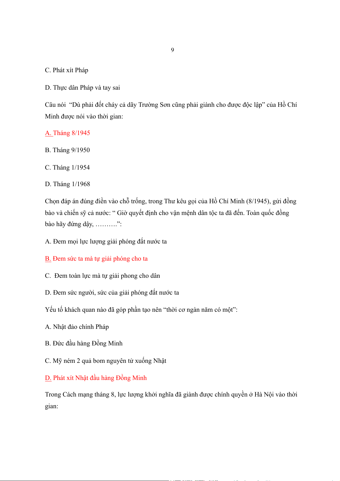 A. Phát xít Nhật và Pháp B. Phát xít Nhật 9 C. Phát xít Pháp