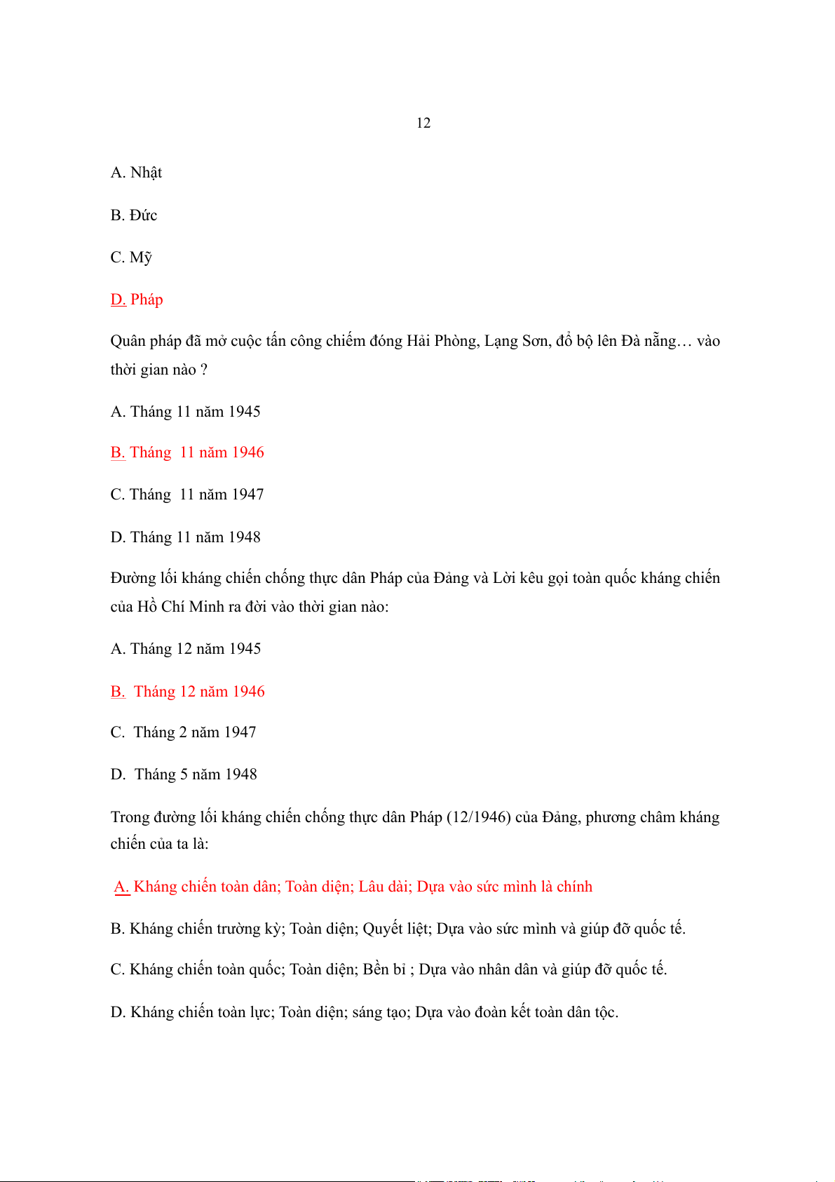 ng lối kháng chiến chống thực dân Pháp của Đảng (tháng 12 / 1946): A. Chỉ thị Toàn dân chi u c ến đấ ủa Trung ương Đảng