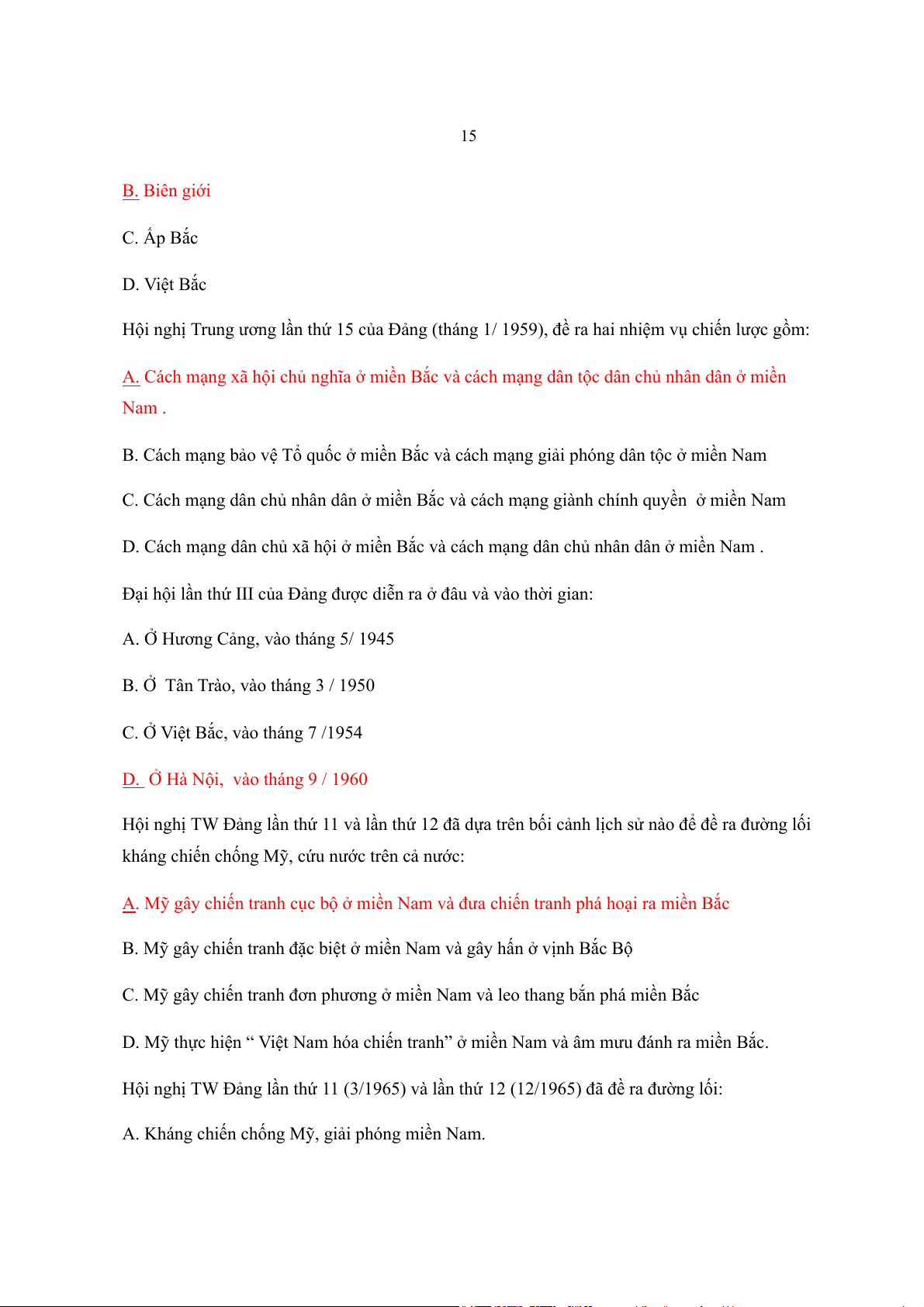 ứ 15 của Đảng (tháng 1/ 1959), đề ra hai nhiệm vụ chiến lược gồm: A. Cách mạng xã h i ch ộ