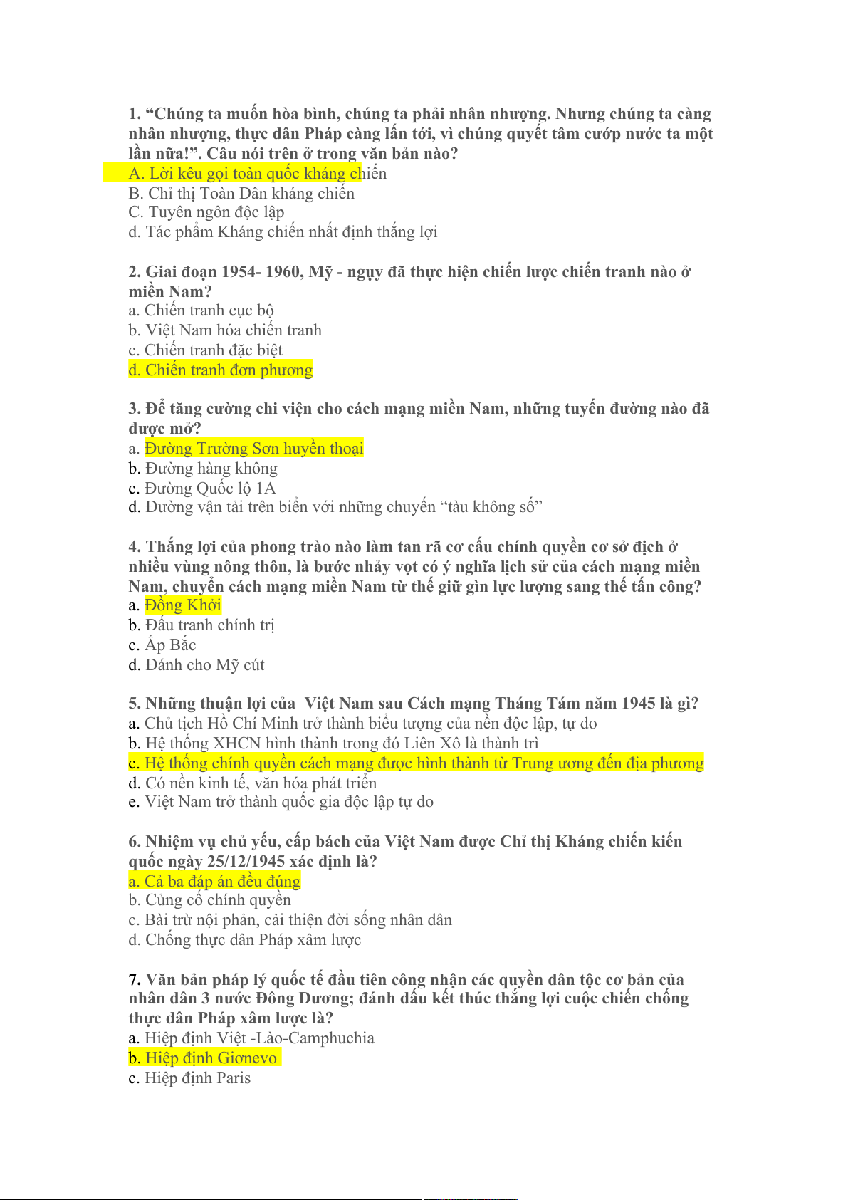 a. Hiệp định Việt -Lào-Camphuchia b. Hiệp định Giơnevo c. Hiệp định Paris