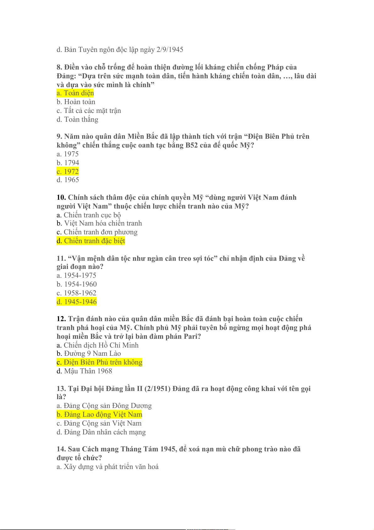 b. Việt Nam hóa chiến tranh c. Chiến tranh đặc biệt