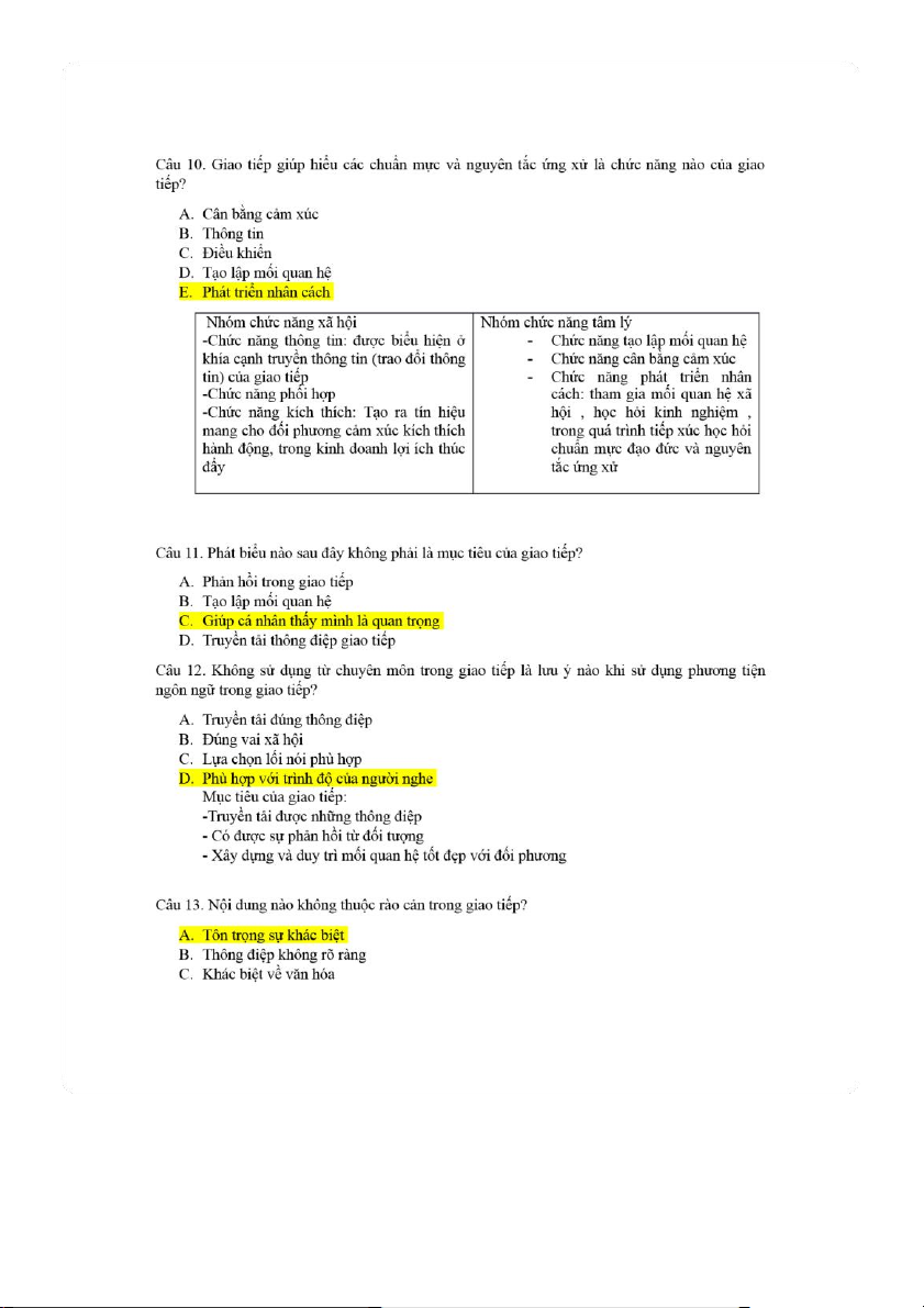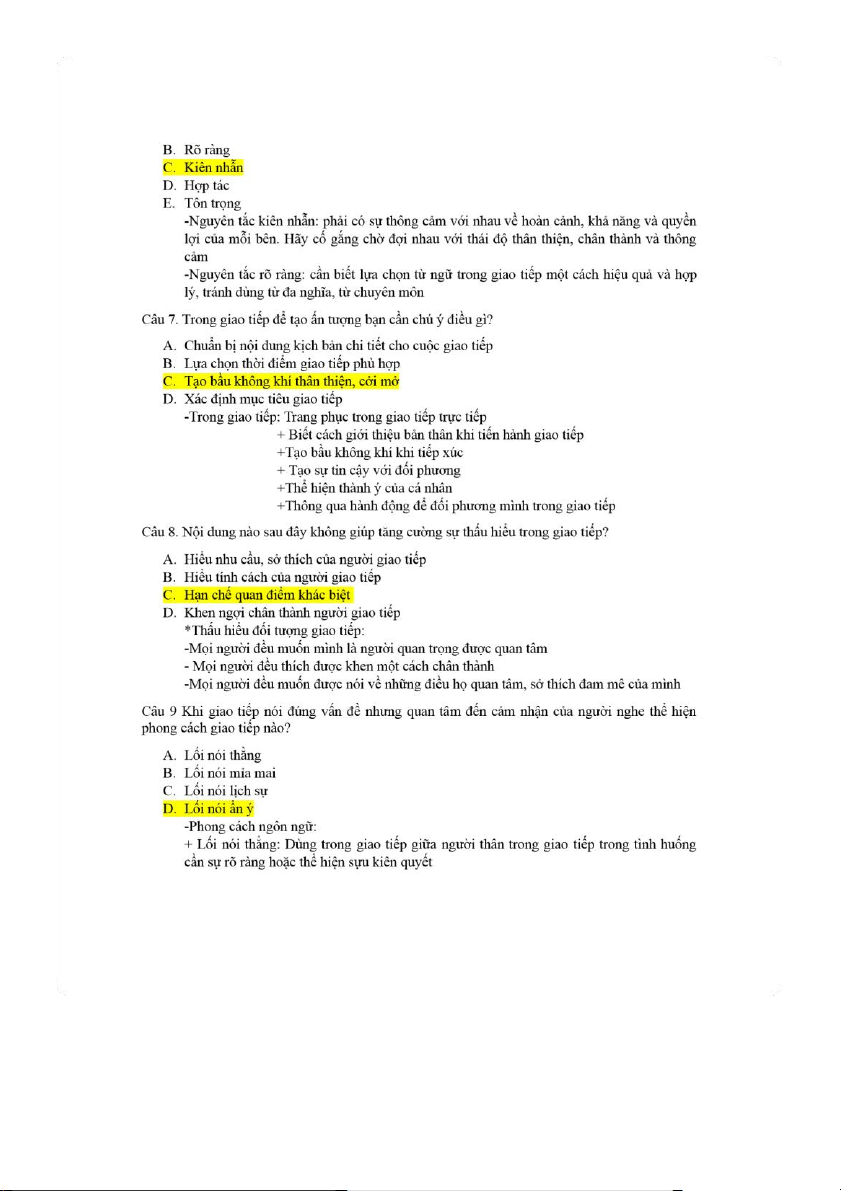 Câu 16. Để tăng sựu thấu hiểu trong giao tiếp bạn cần tránh những vấn dề nào sau đây? A. Khen ngợi chân thành