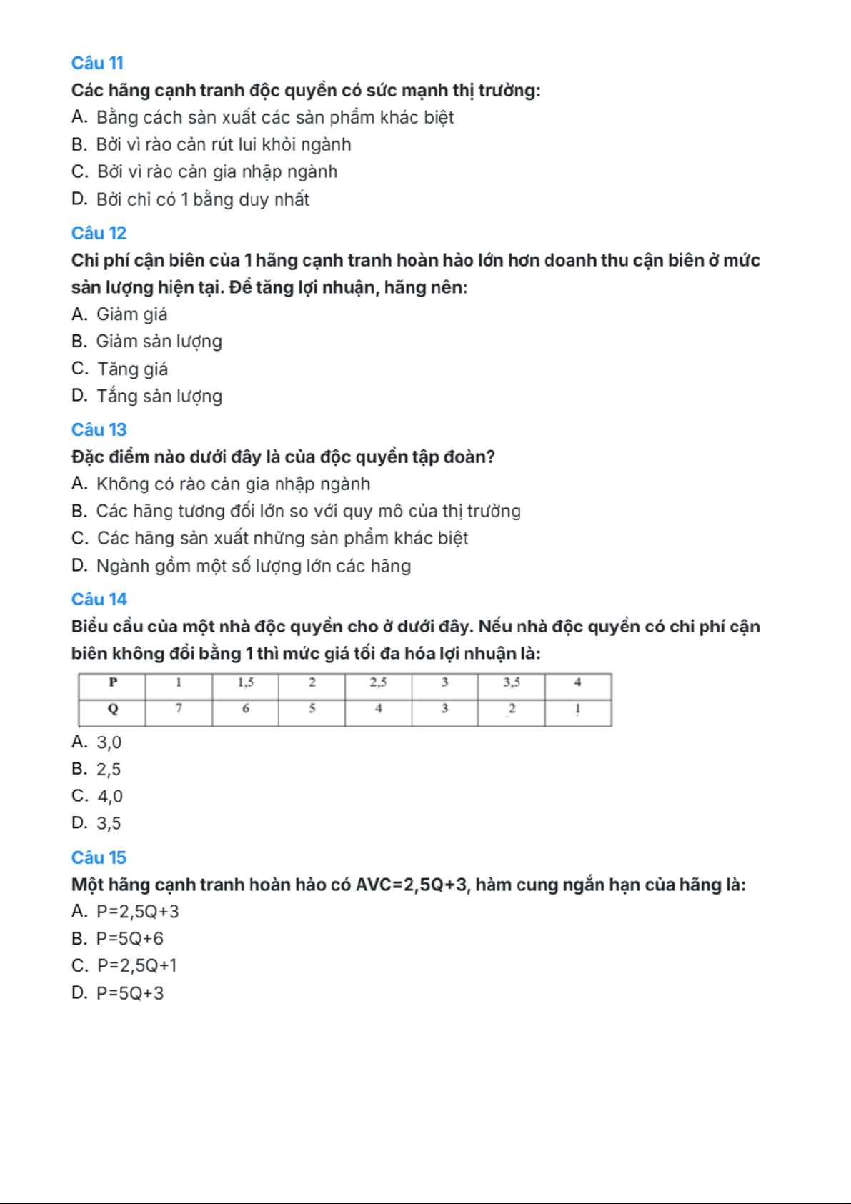 Câu hỏi trắc nghiệm môn Kinh tế vi mô | Trường Đại học Kinh TếQuốc Dân. Tài liệu giúp bạn tham khảo, ôn tập và đạt kết quả cao. Mời đọc đón xem!