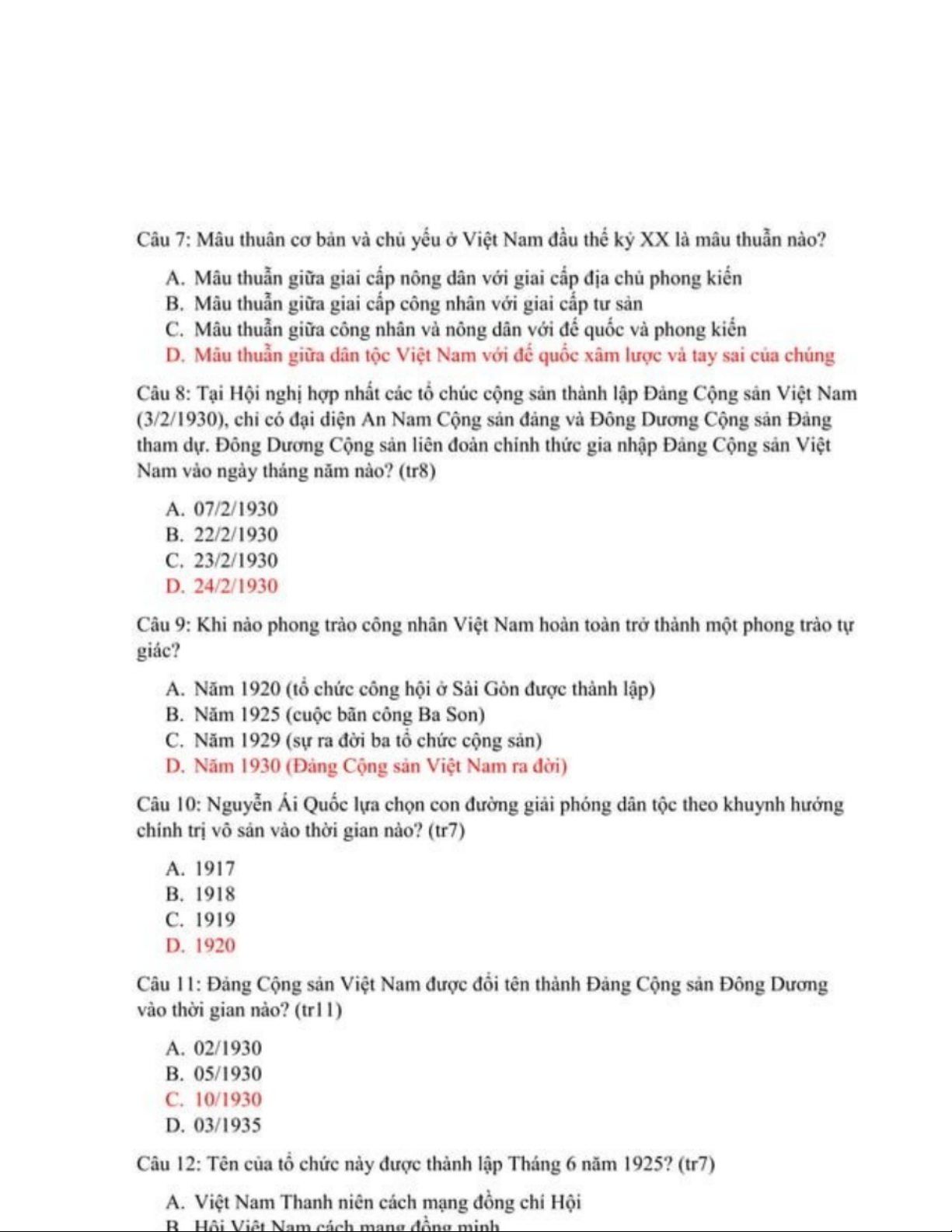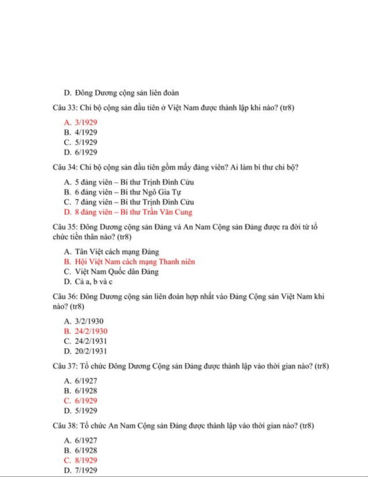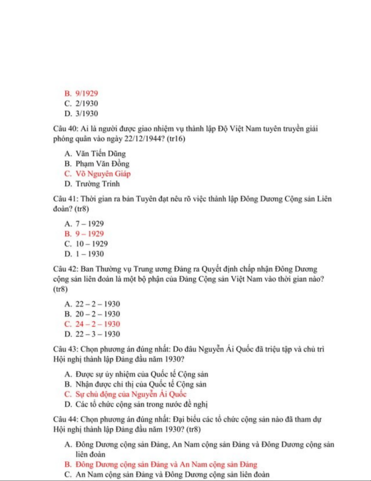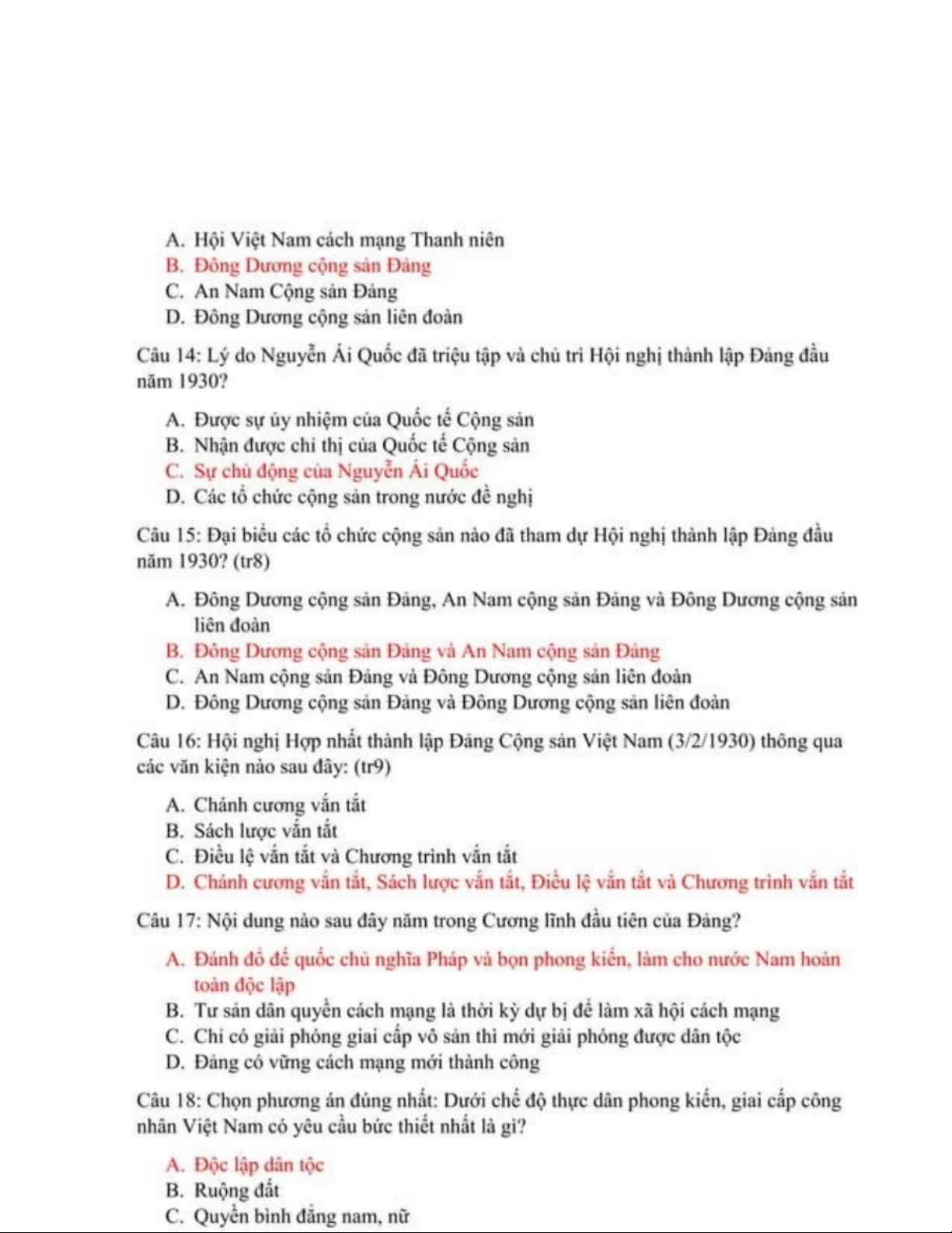 LSĐ - Câu Hỏi Trắc Nghiệm Môn Lịch Sử Đảng Việt Nam - Studocu