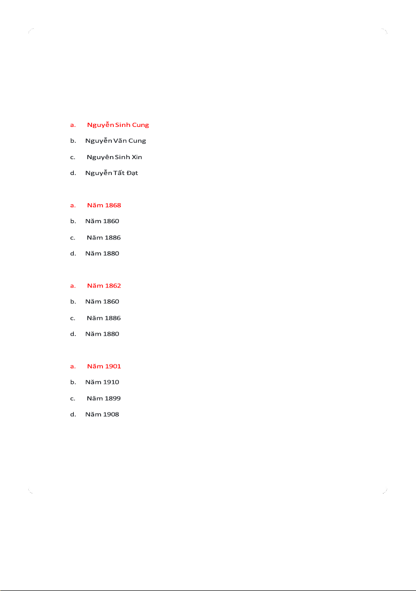 3. Cha của Hồ Chí Minh là Nguymn Sinh Sắc, sinh năm nào?