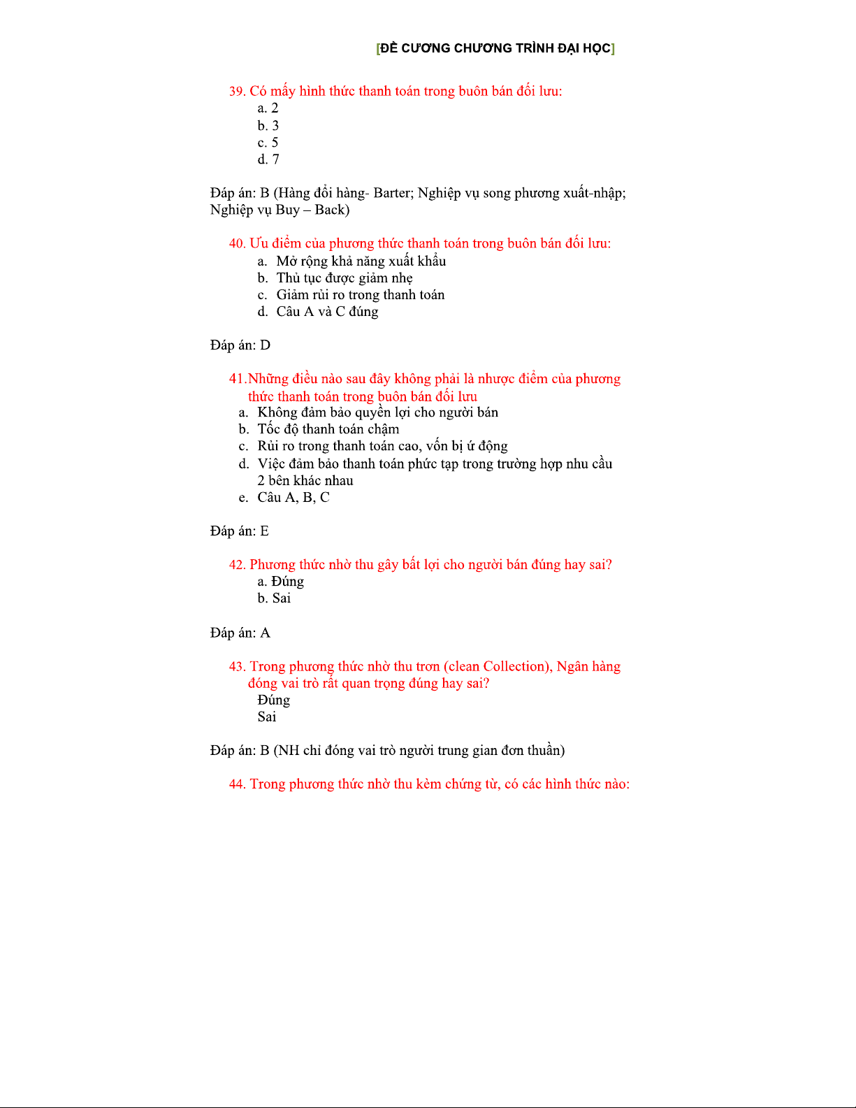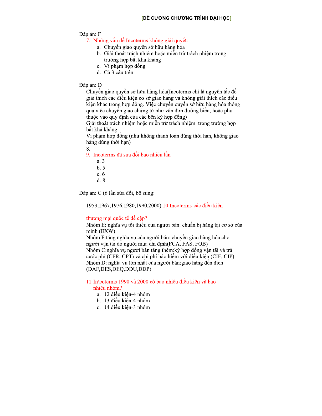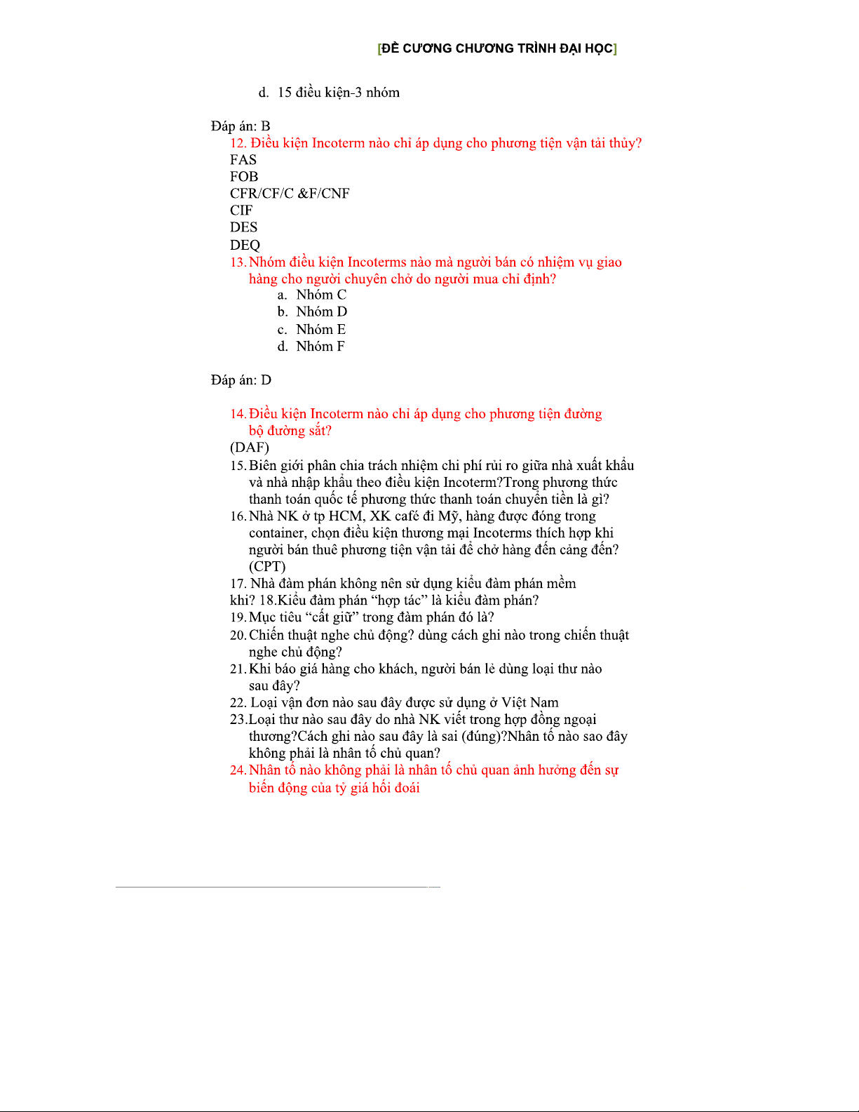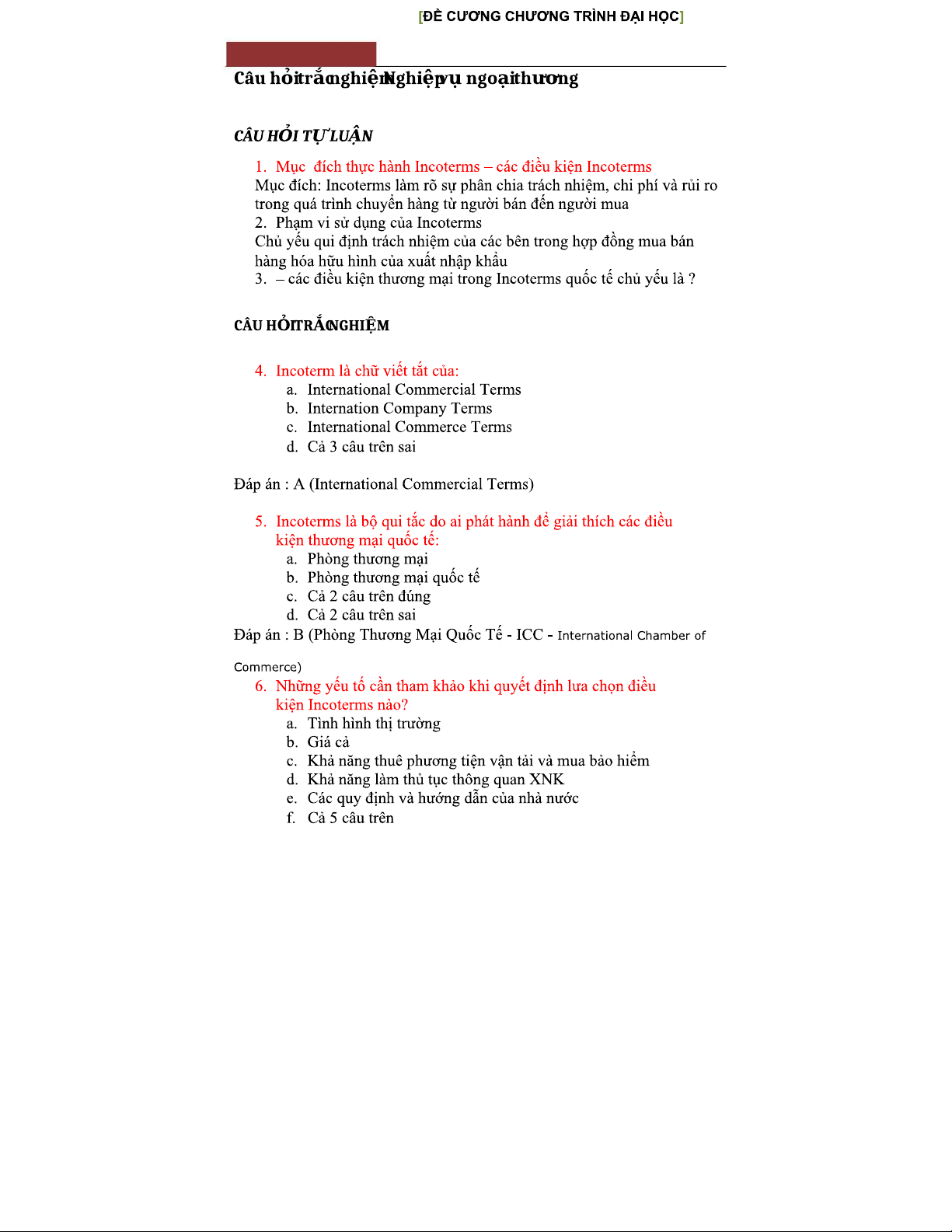 Câu hỏi trắc nghiệm Nghiệp vụ Ngoại thương - Kiến thức căn bản