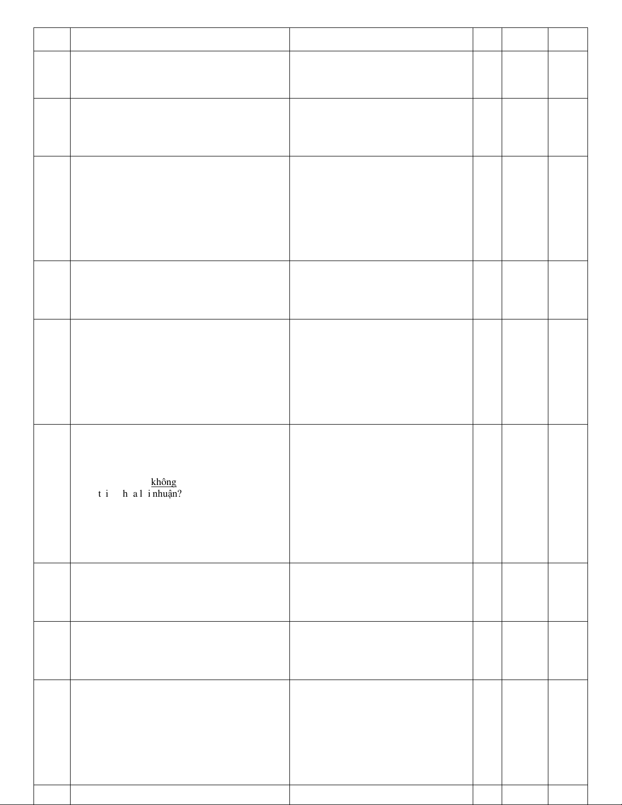 STT Ni dung câu hỏi Phương n Đp án Chương Cp đ A. Chi phí Th cơ hi