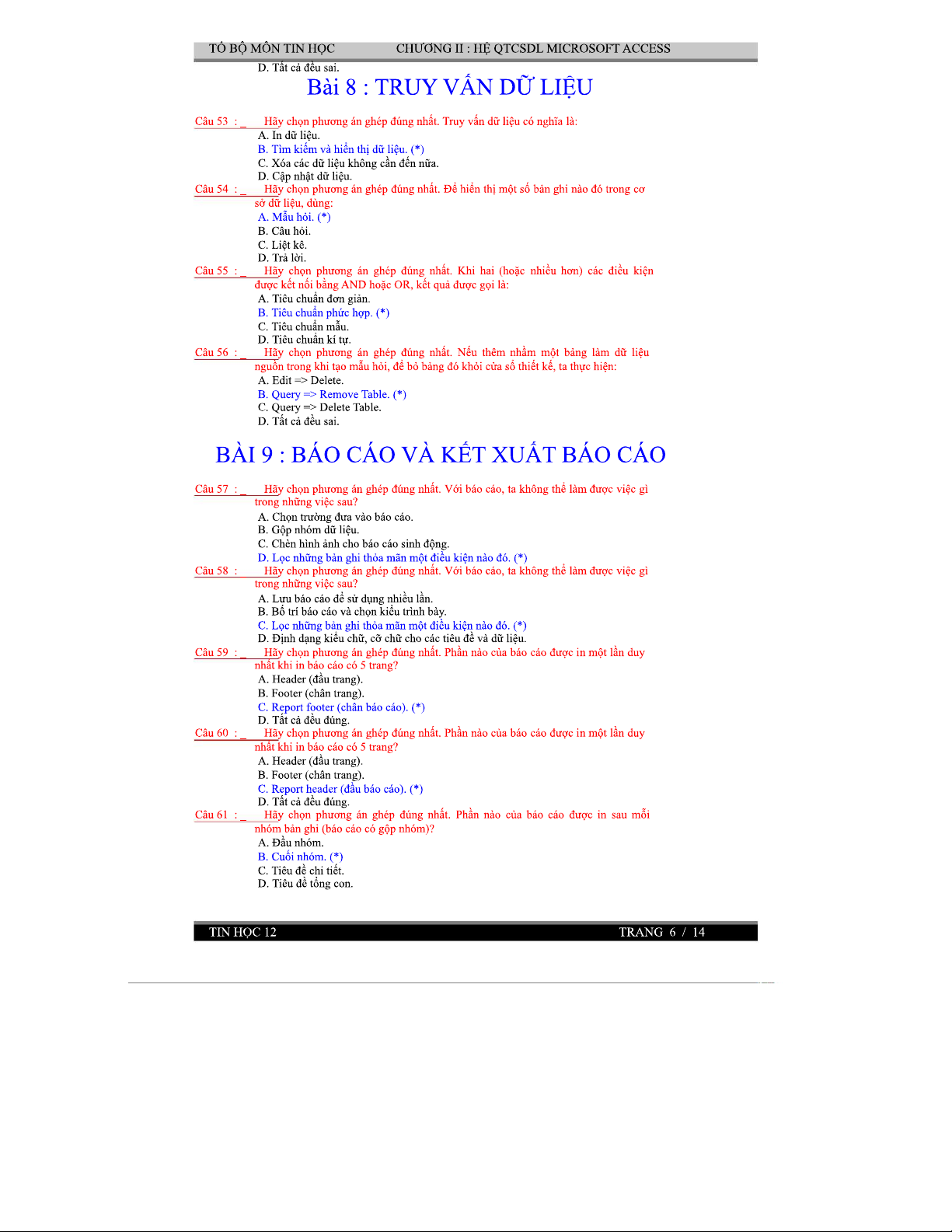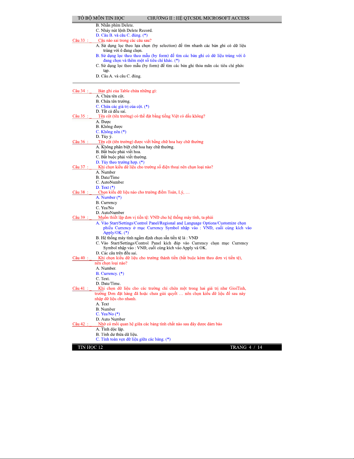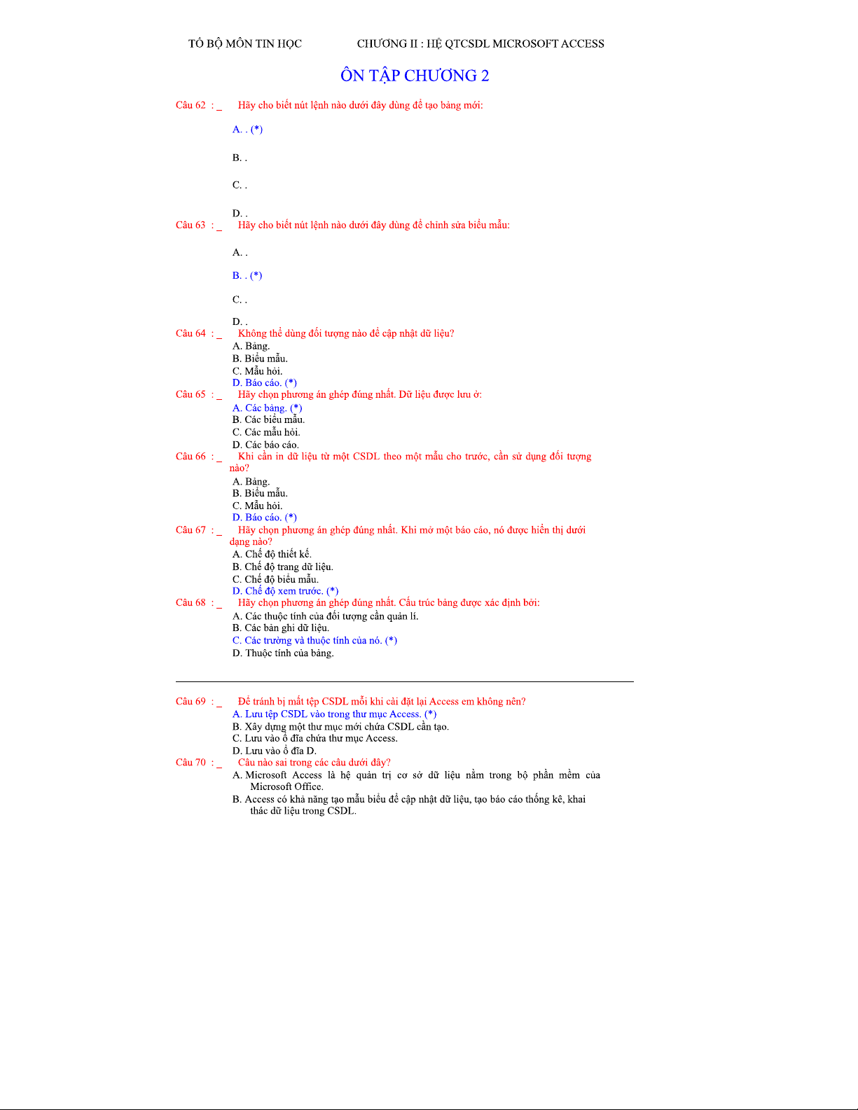 Câu hỏi trắc nghiệm ôn tập học kỳ 2 Microsoft Access - P2