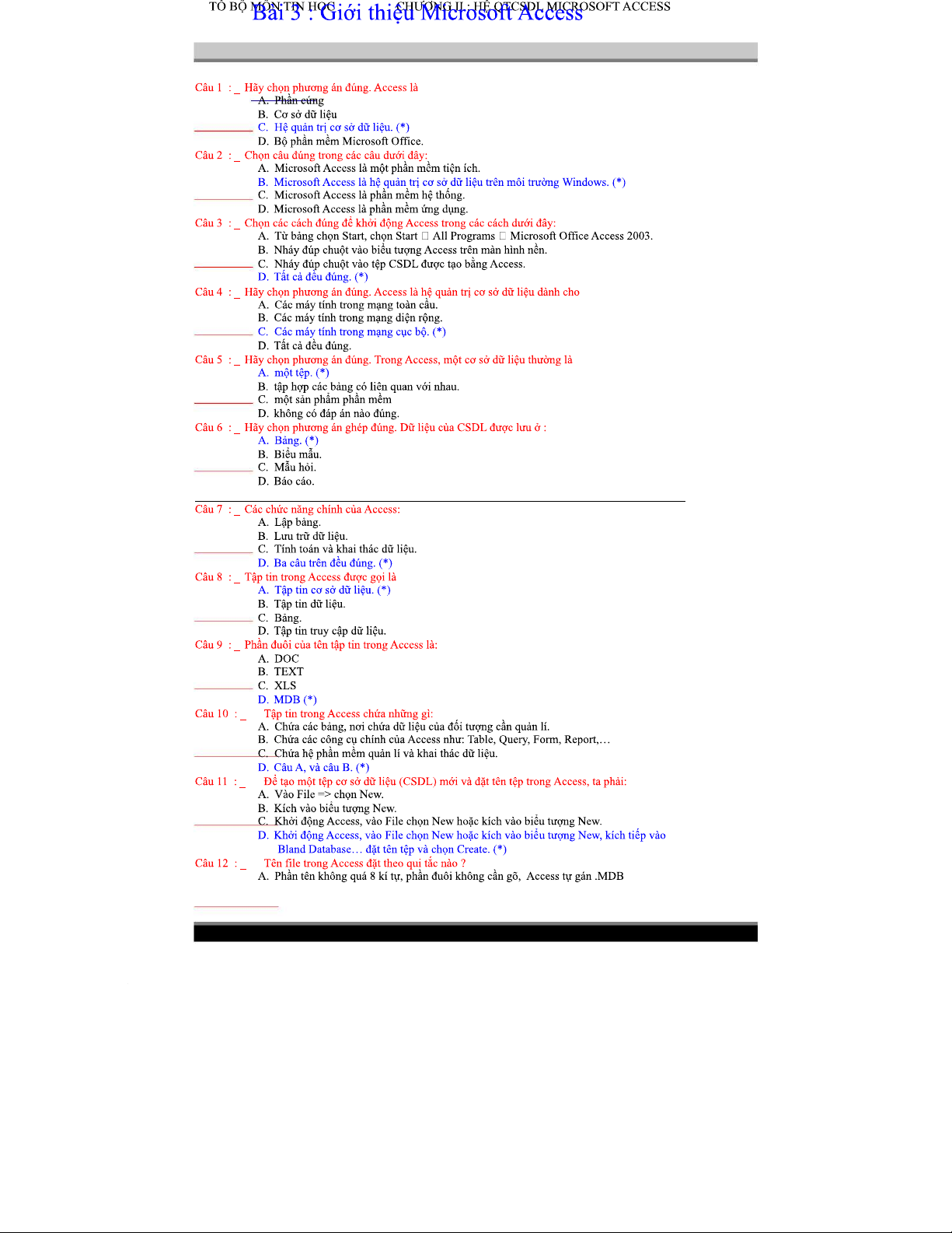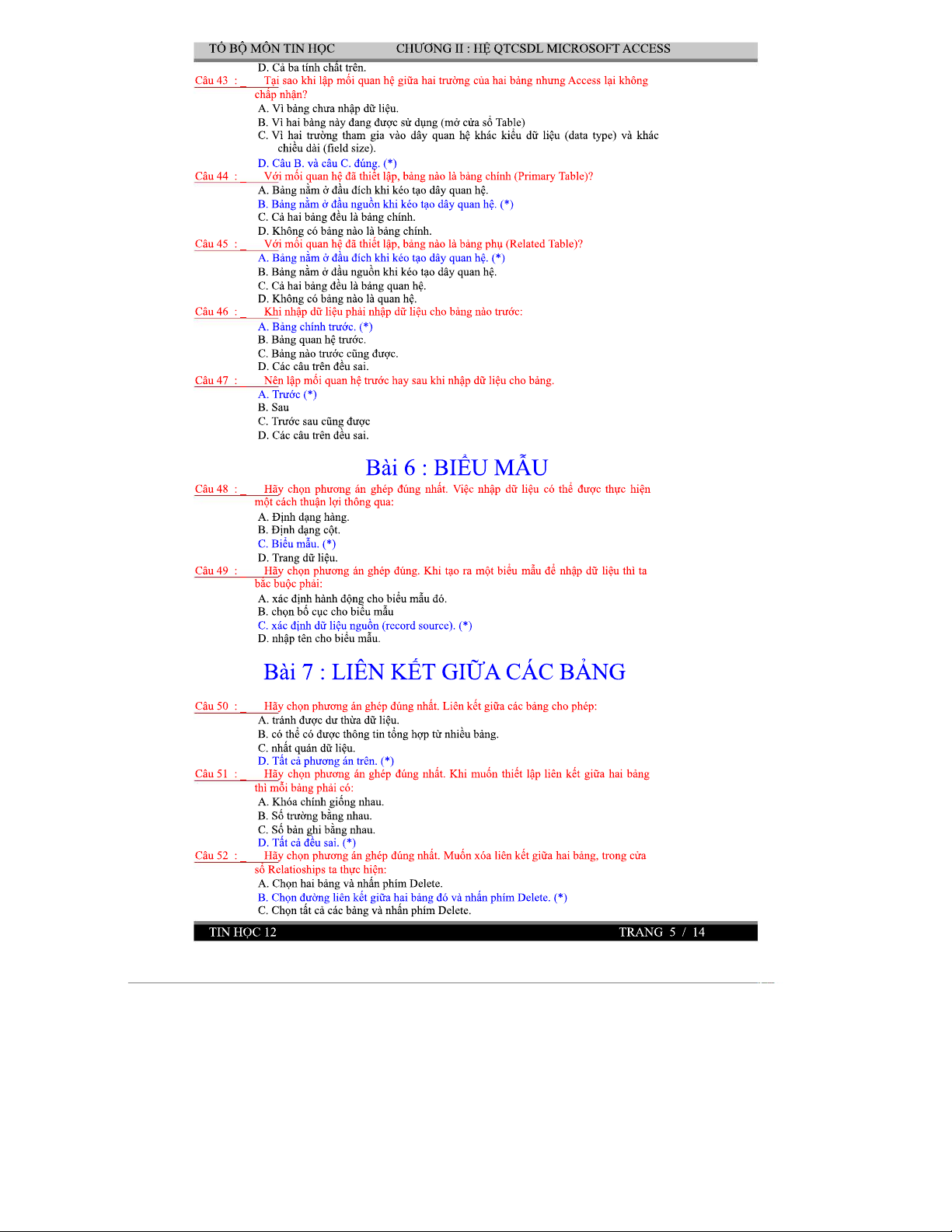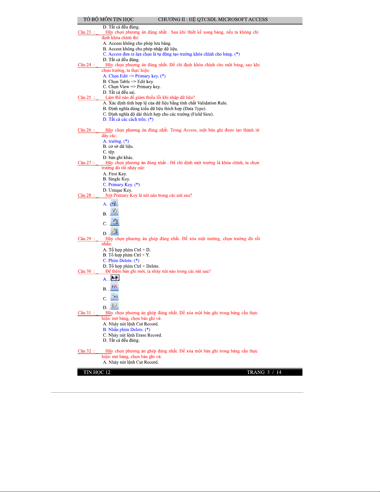 Câu hỏi trắc nghiệm ôn tập học kỳ 2 Microsoft Access - P2