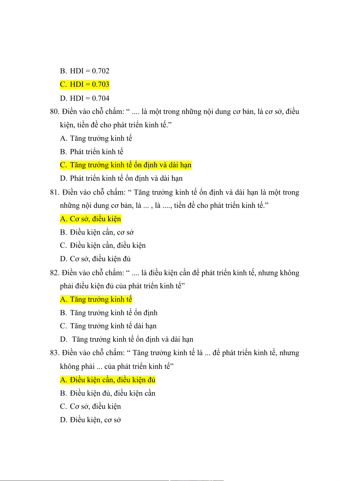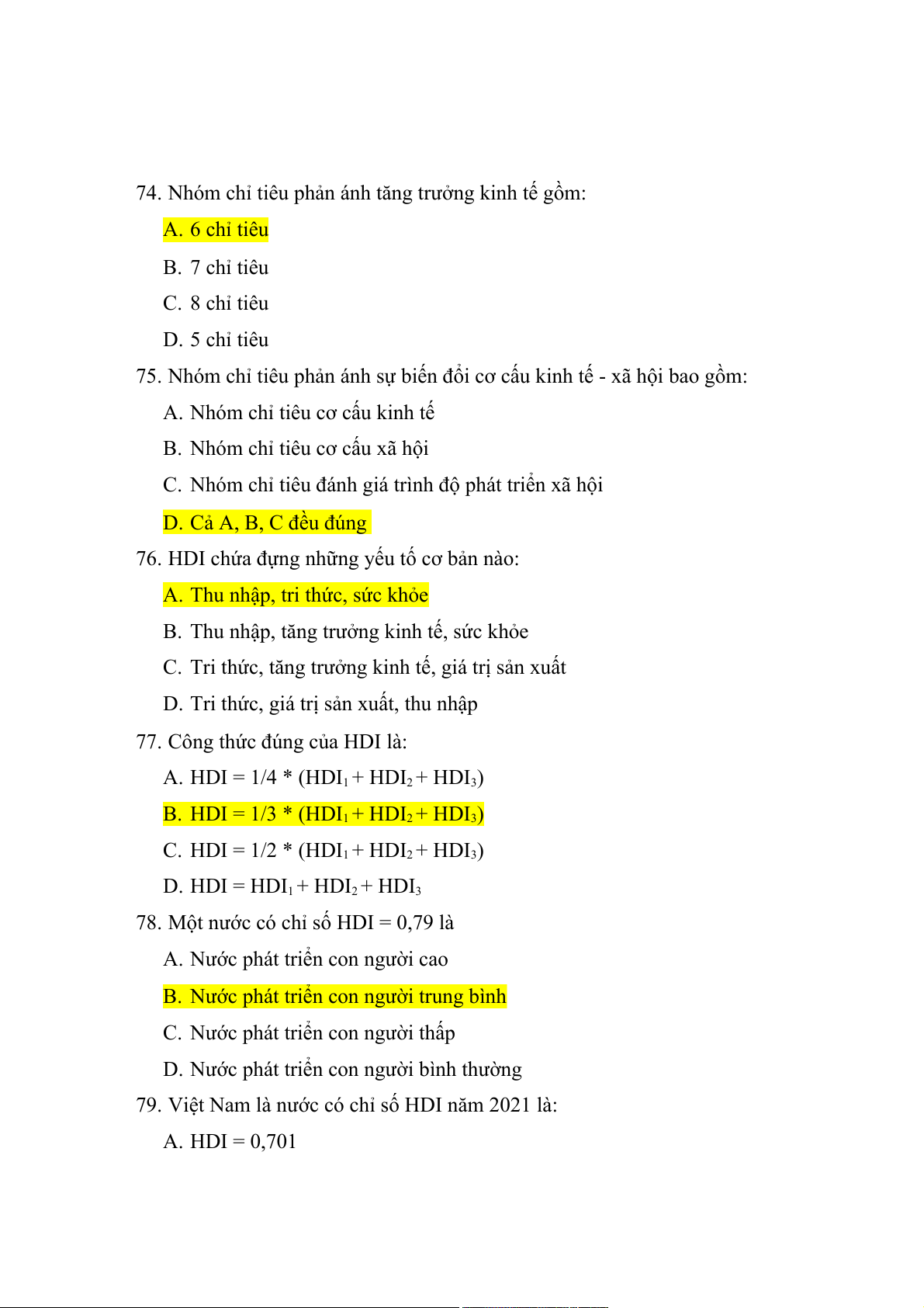 79. Việt Nam là nước có chỉ số HDI năm 2021 là: A. HDI = 0,701 B. HDI = 0.702 C. HDI = 0.703 D. HDI = 0.704