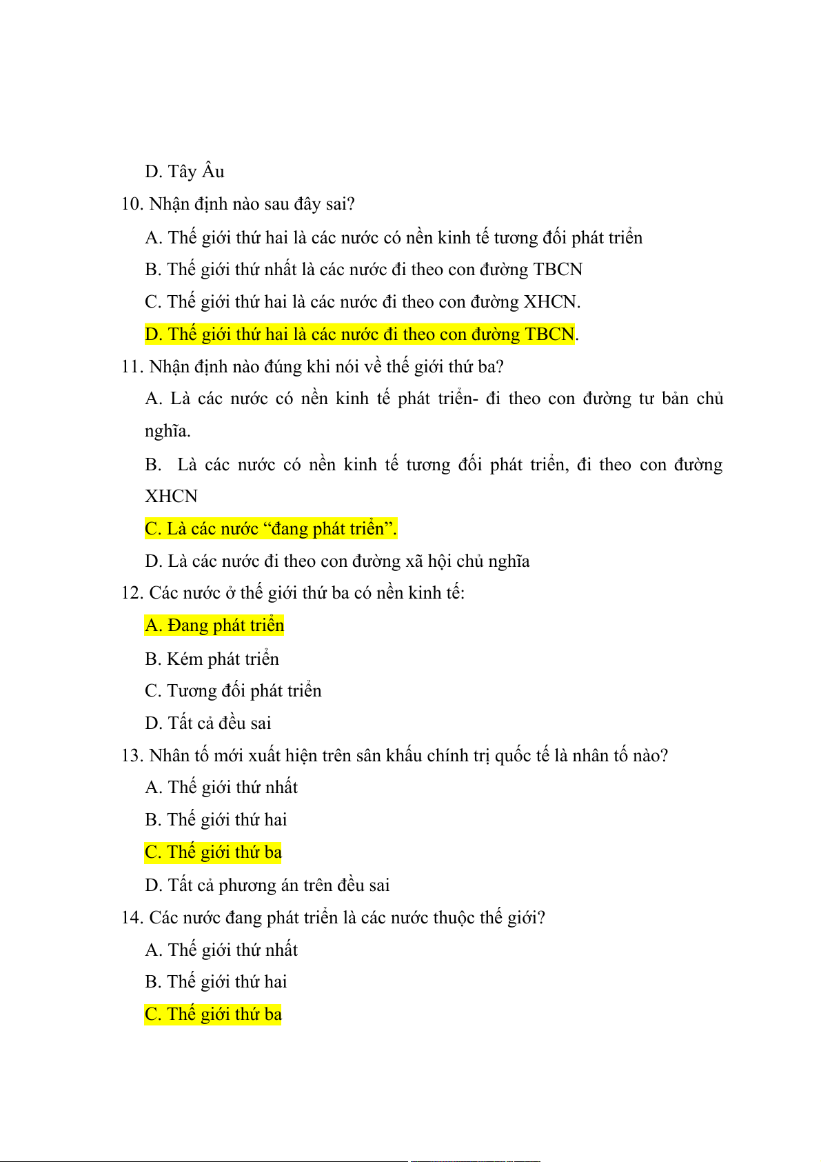 9. Các nước thuộc “Thế giới thứ hai” phần lớn tập trung ở đâu? A. Châu Mỹ B. Châu Phi C. Đông Âu D. Tây Âu