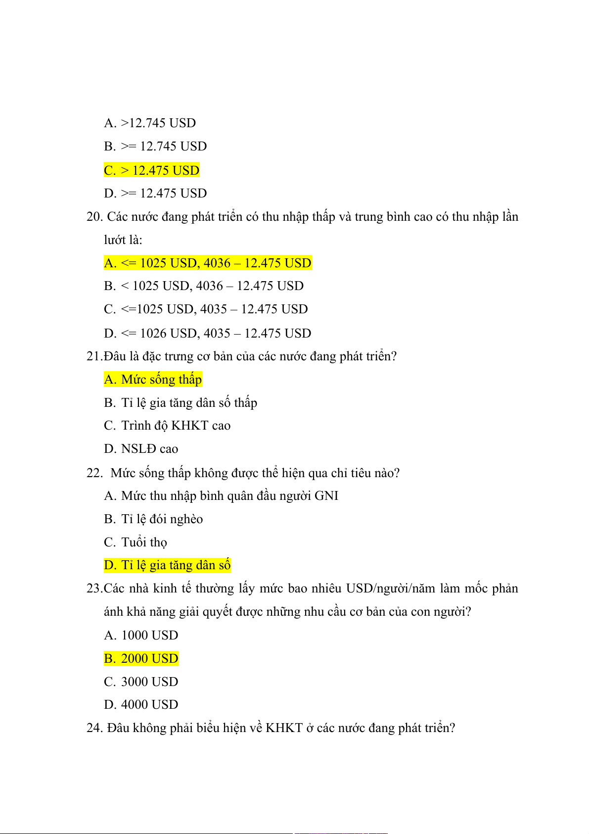 19. Các nước phát triển có thu nhập: A. >12.745 USD B. >= 12.745 USD C. > 12.475 USD D. >= 12.475 USD