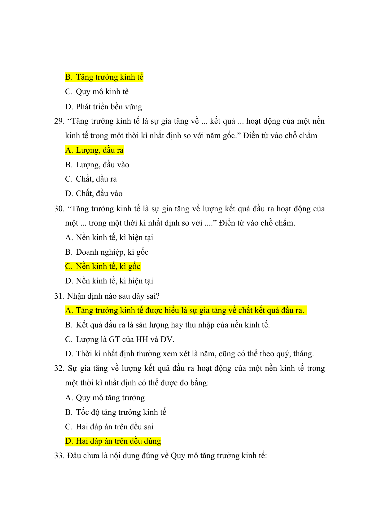 30. “Tăng trưởng kinh tế là sự gia tăng về lượng kết quả đầu ra hoạt động của