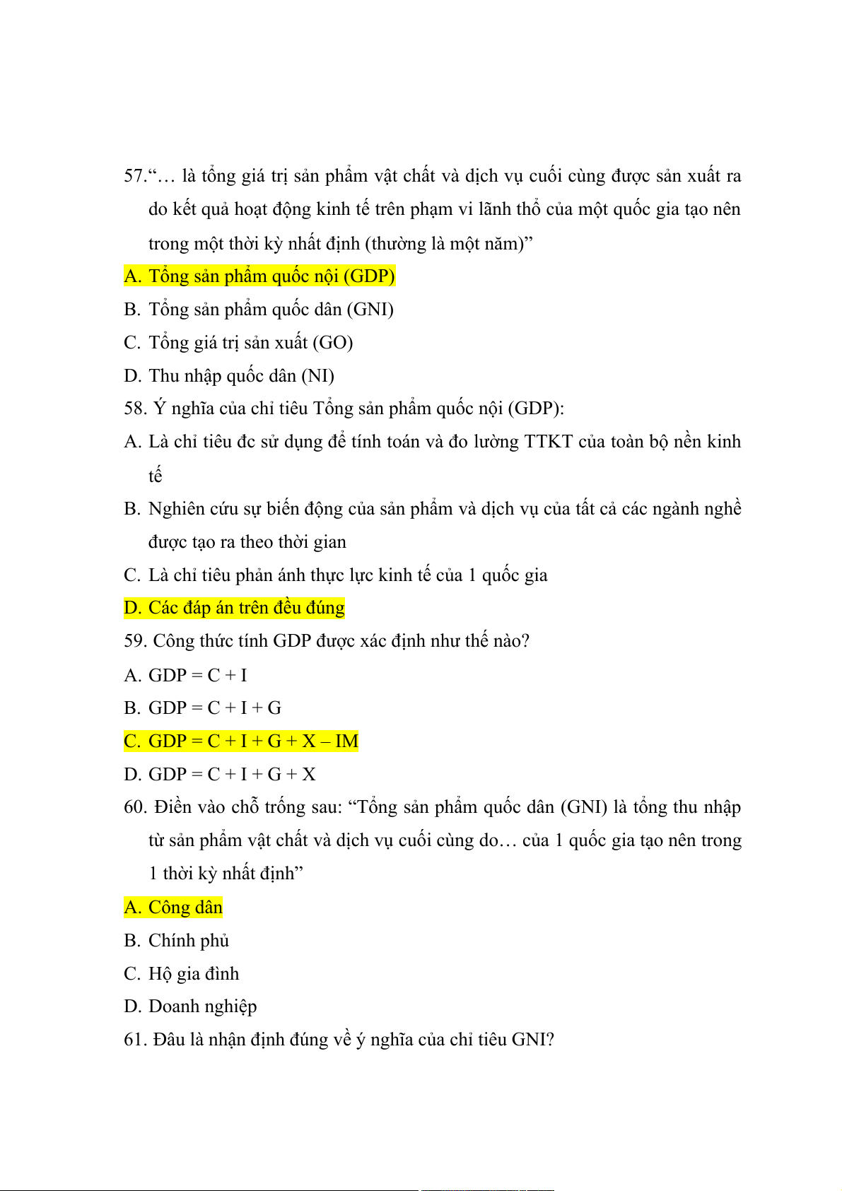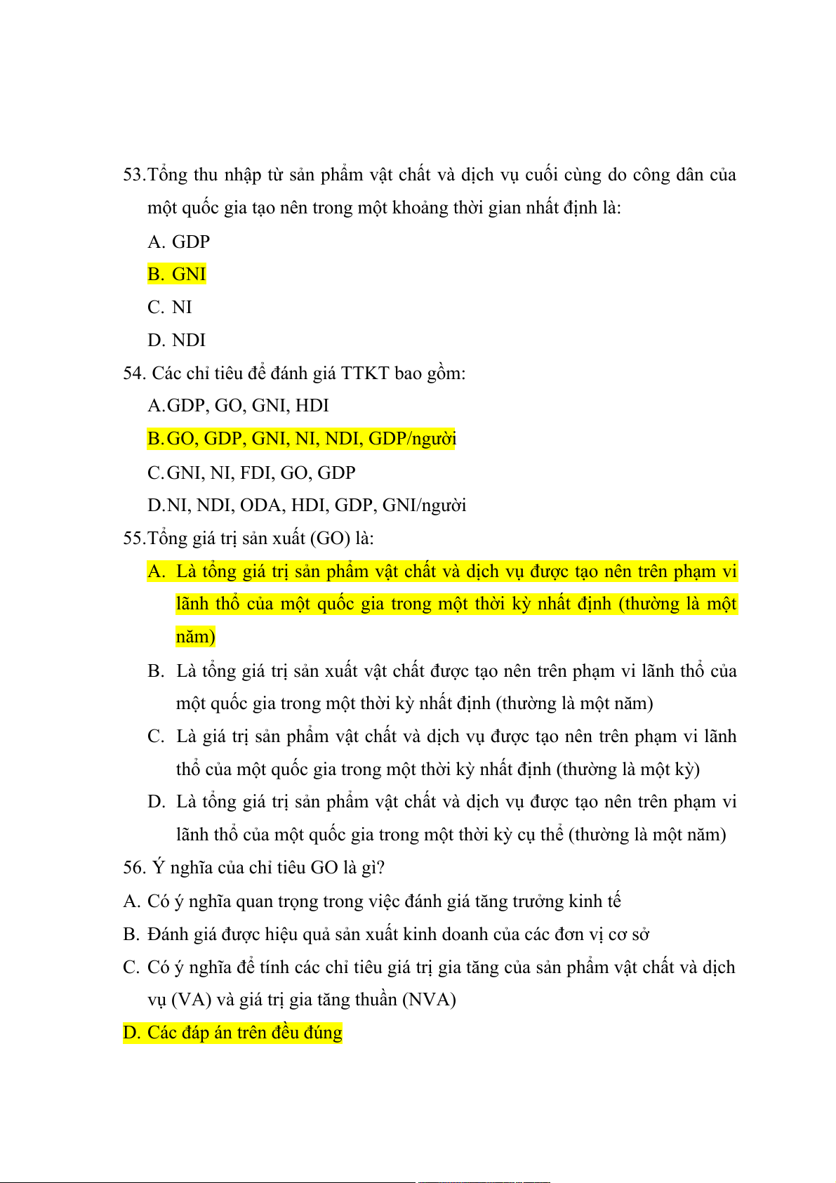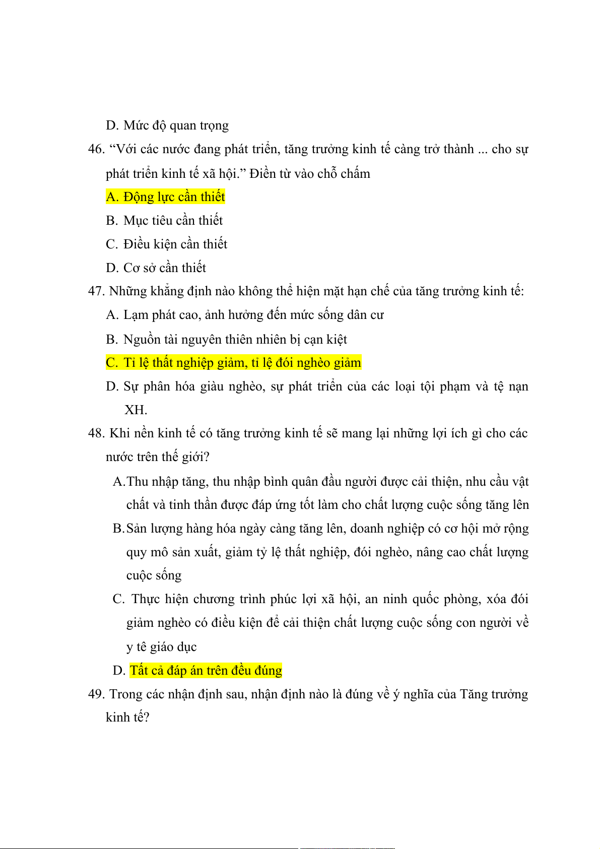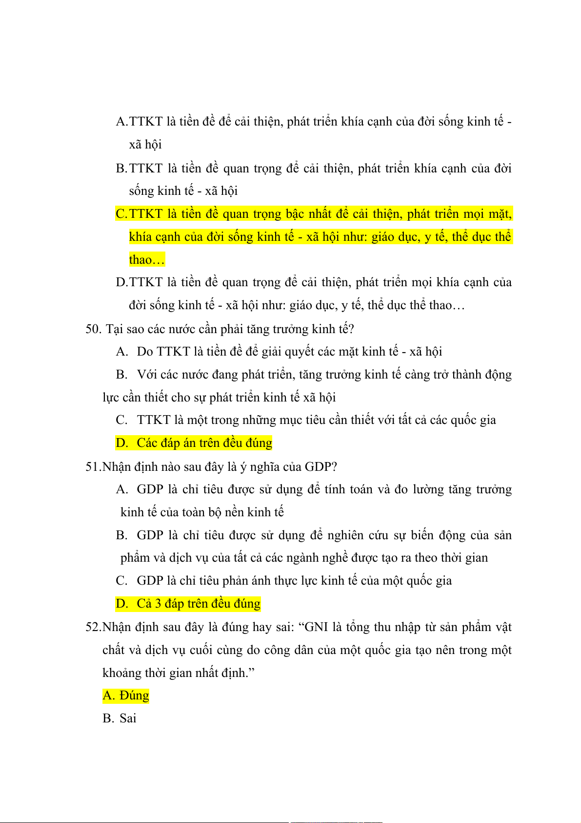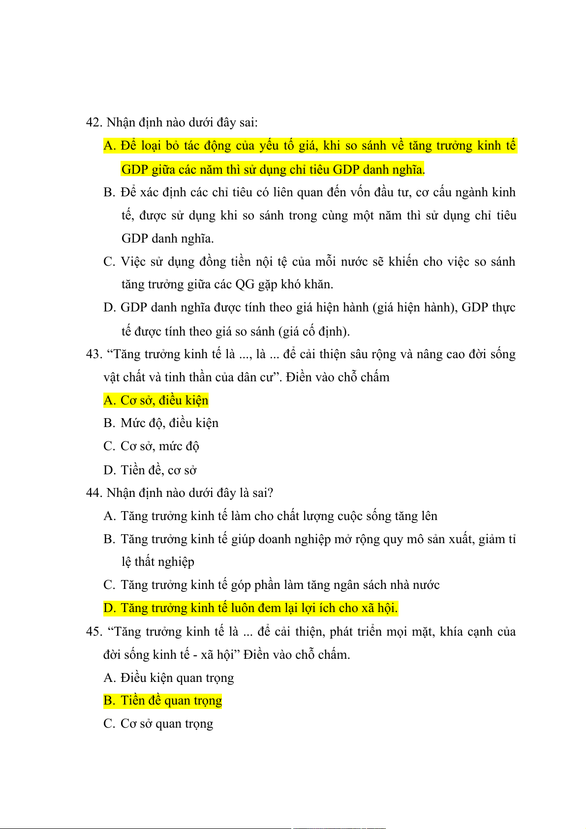 CÂU HỎI TRẮC NGHIỆM MÔN KINH TẾ PHÁT TRIỂN