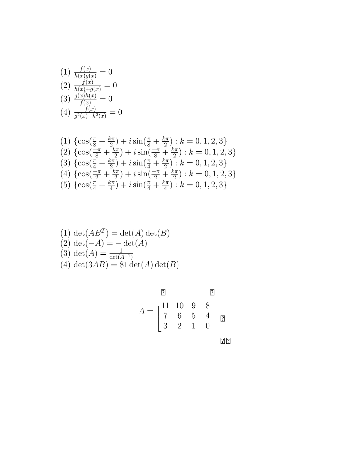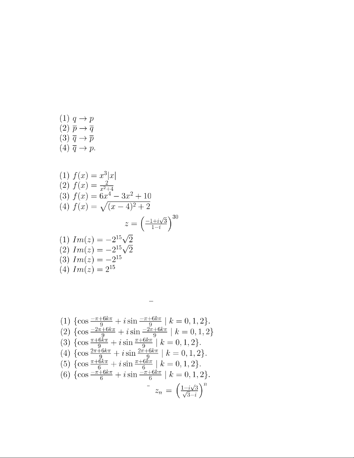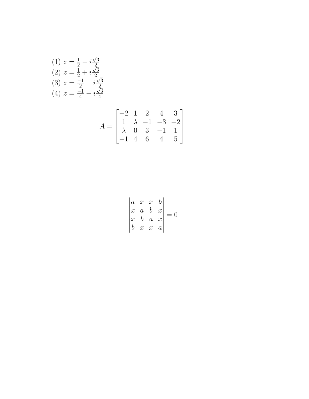 (3) {1,i,−i,0} (4) {−1,1 + i,−1 − i,0} (5) Một đáp án khác.