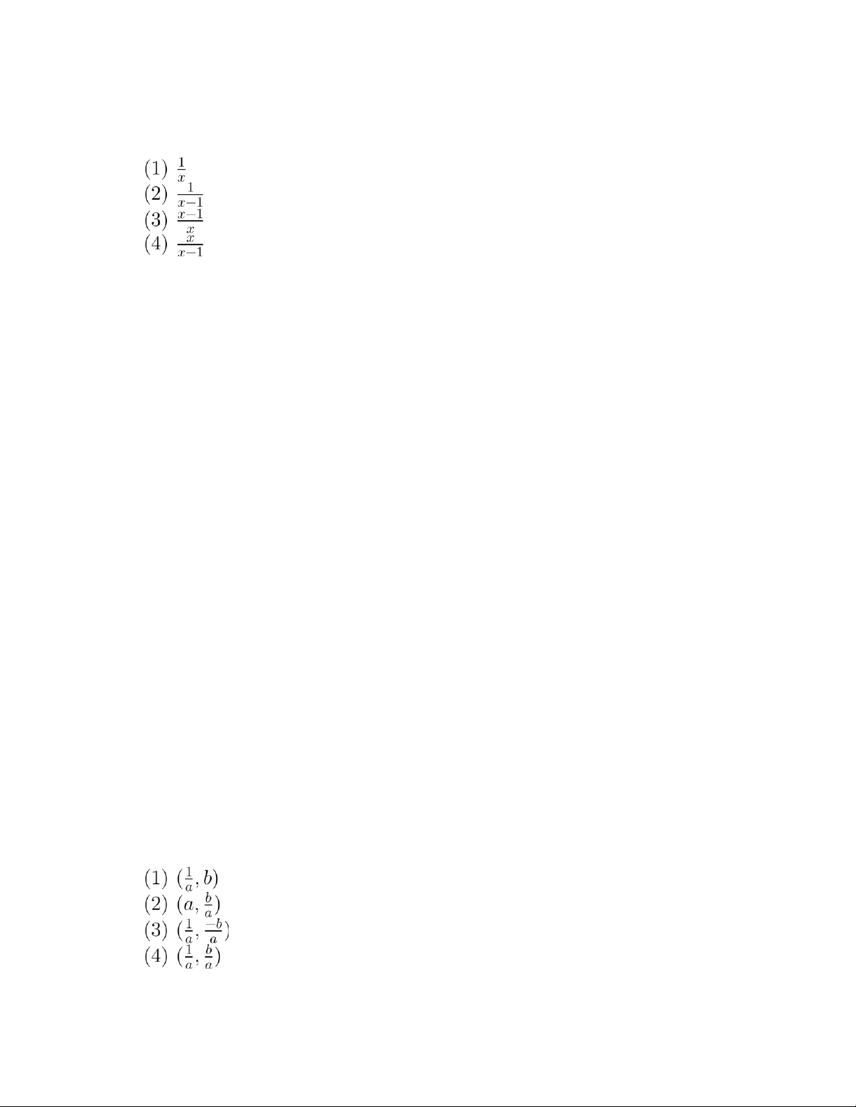 hay phần tử nghịch đảo của x = (a,b) là: (5) Một đáp án khác.