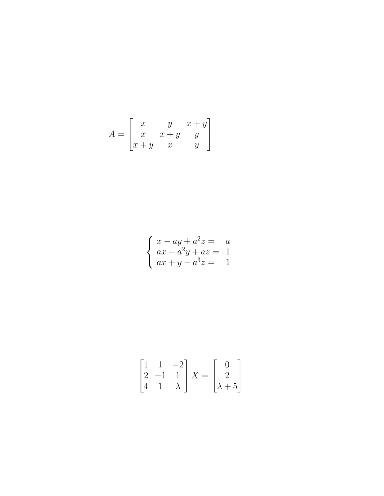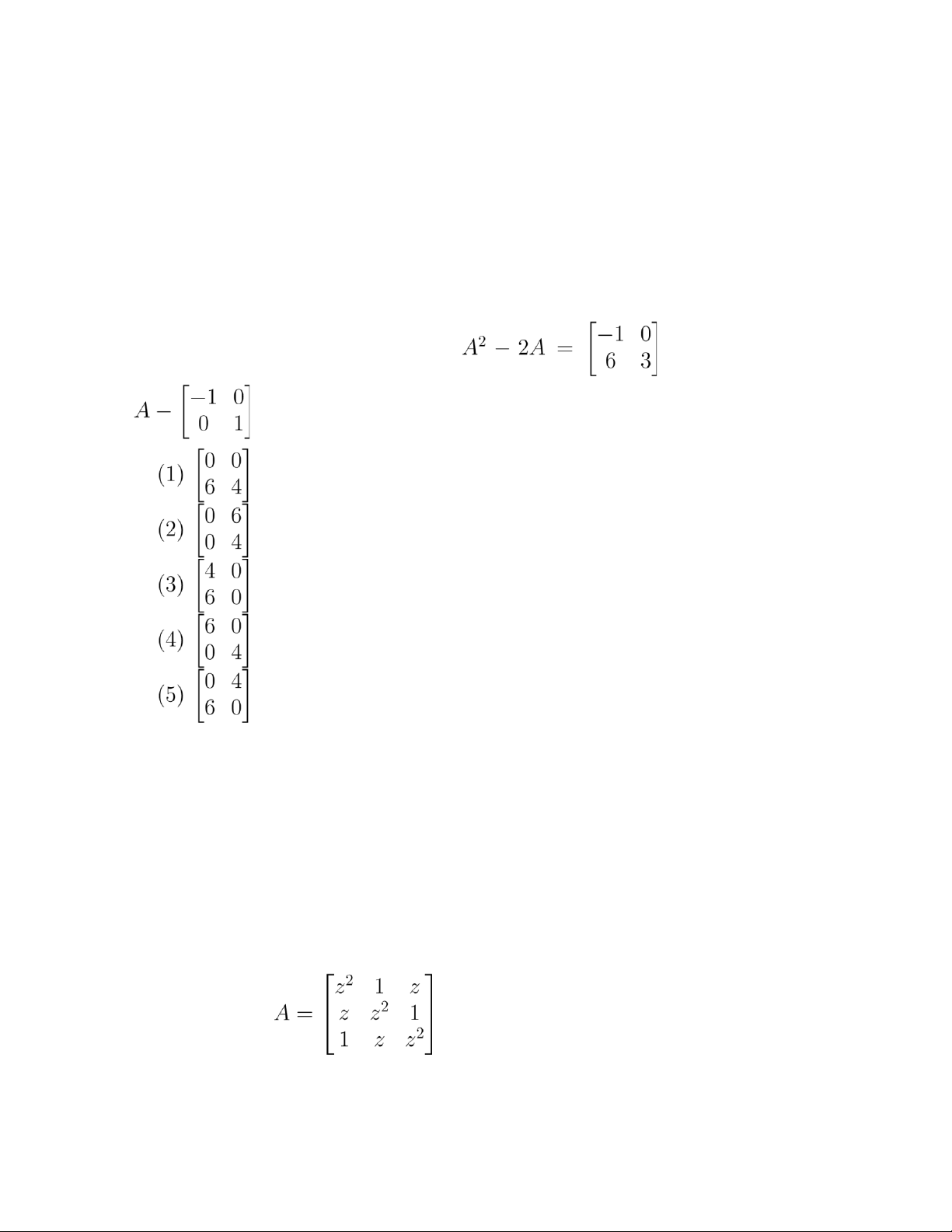 với z ∈ C. det(A) = 0 khi (5) Một đáp án khác. Câu 46. Ma trận có hạng nhỏ nhất khi (1) λ = 1 (2) λ = −2 (3) λ = 3