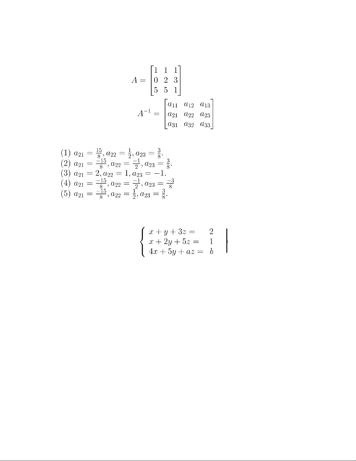 có ma trận nghịch đảo là: Khi đó . (6) Một đáp án khác. Câu 34. Hệ phương trình