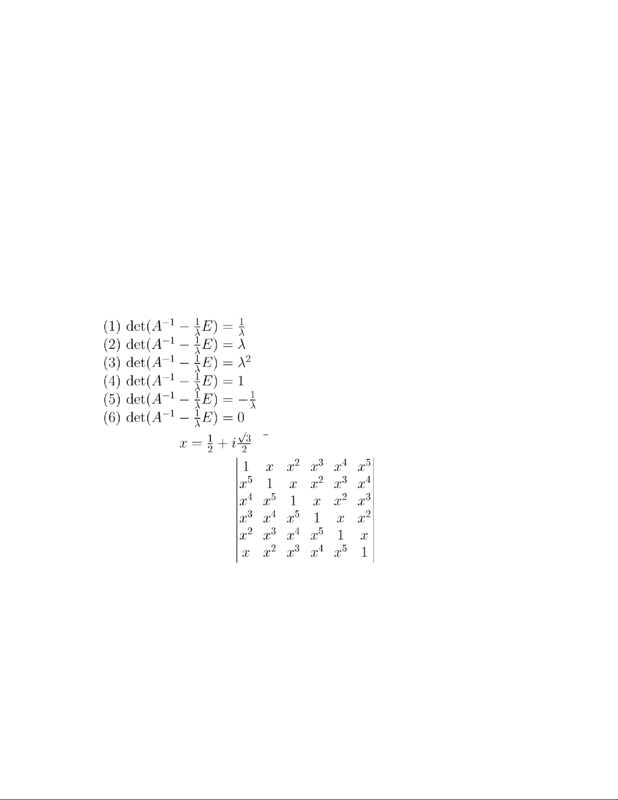 E là ma trận đơn vị cấp 6. Khi đó phương trình det(A−λE) = 0: