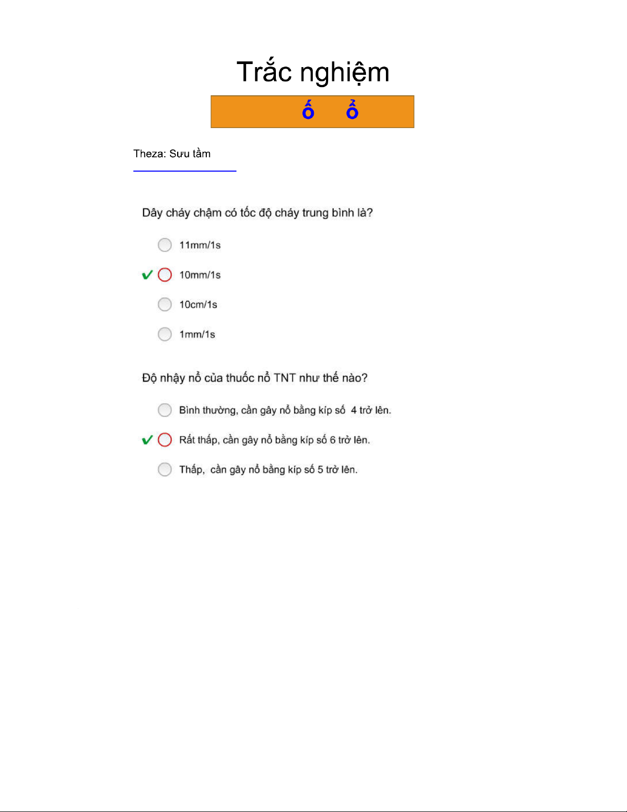 Câu hỏi trắc nghiệm ôn tập Thuốc nổ | Thực tập cơ bản | Trường Đạihọc Bách Khoa Hà Nội. Tài liệu giúp bạn tham khảo, ôn tập và đạt kết quả cao. Mời đọc đón xem!