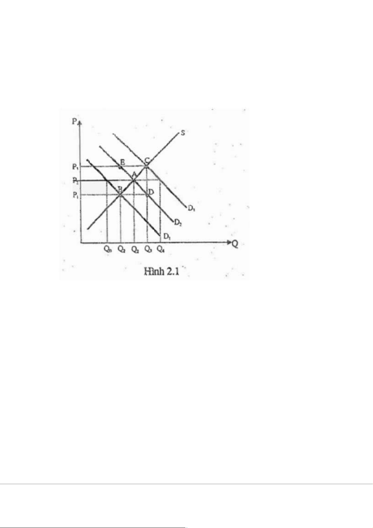 Câu 55: Theo hình 2.1, nếu đường cầu là D2 thì: