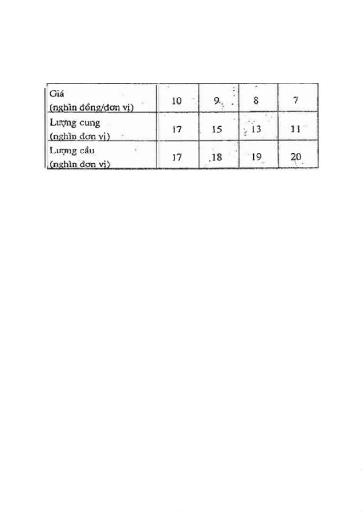 Câu 75: Sử dụng số liệu ở biểu câu 70. Nếu nhà nước áp đặt giá là 9 nghìn đồng/