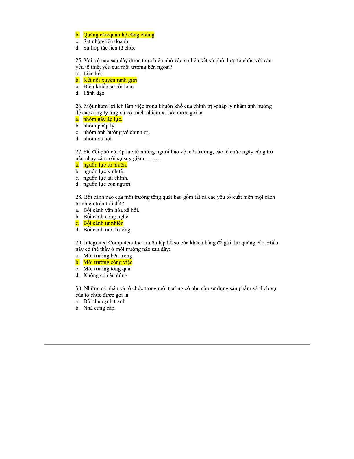 Câu hỏi trắc nghiệm Quản trị học Chương 3