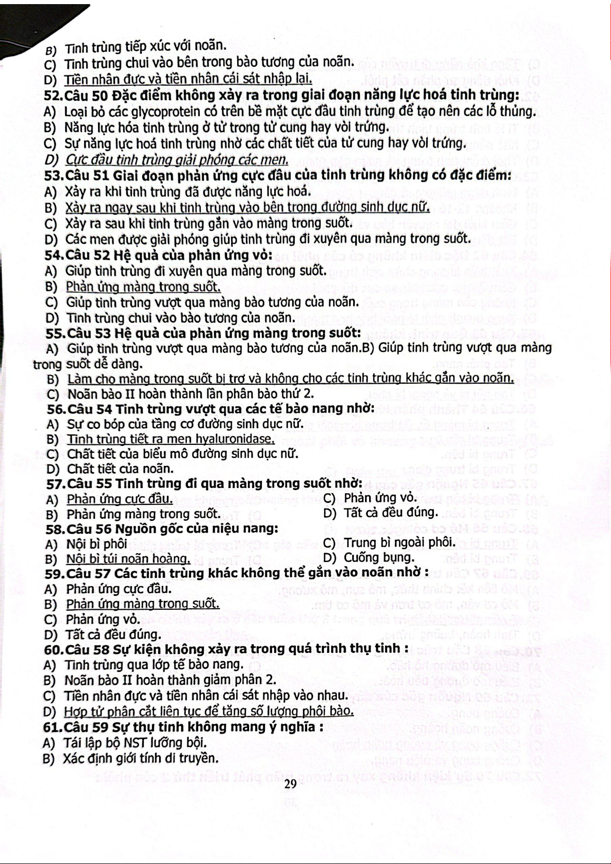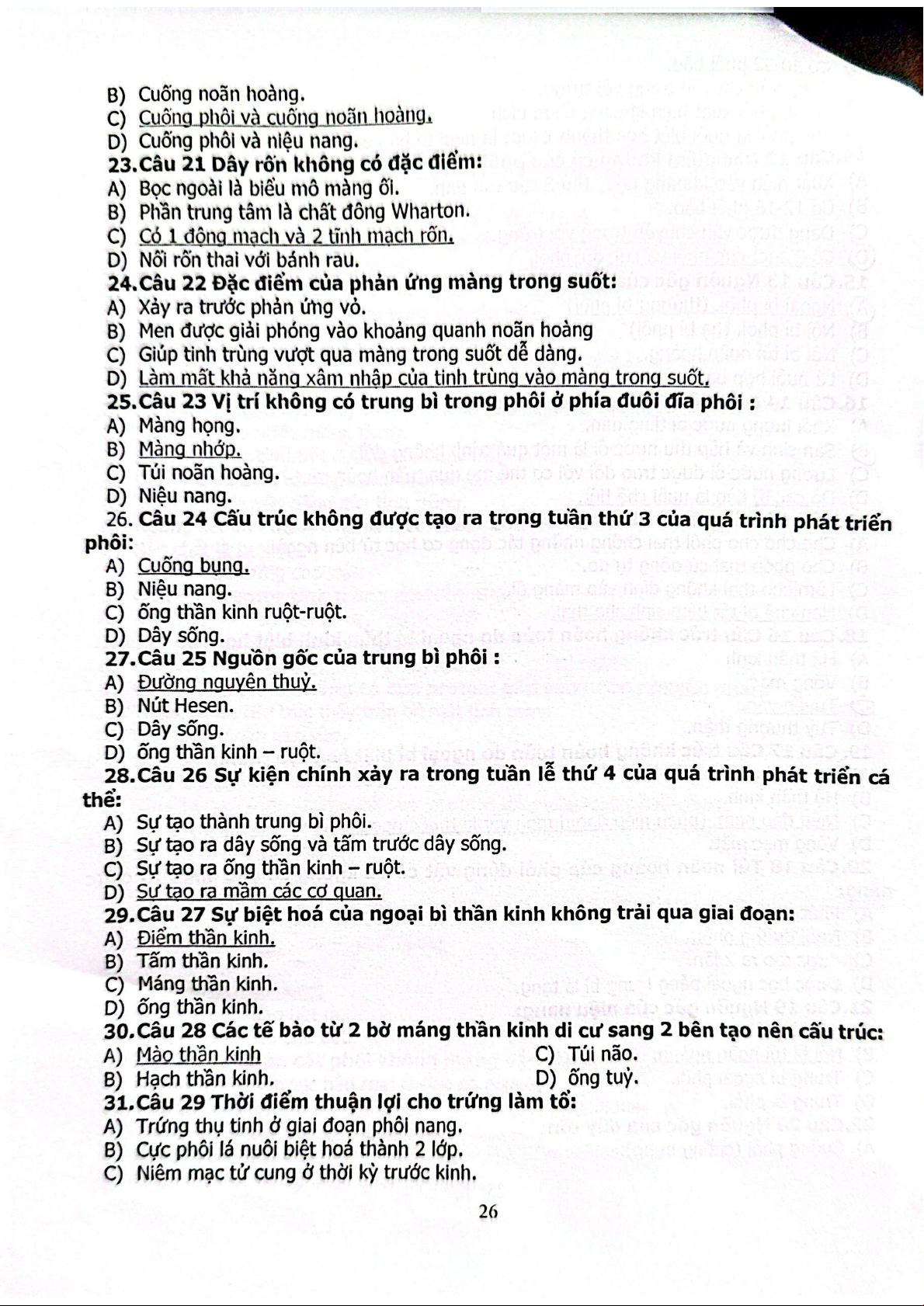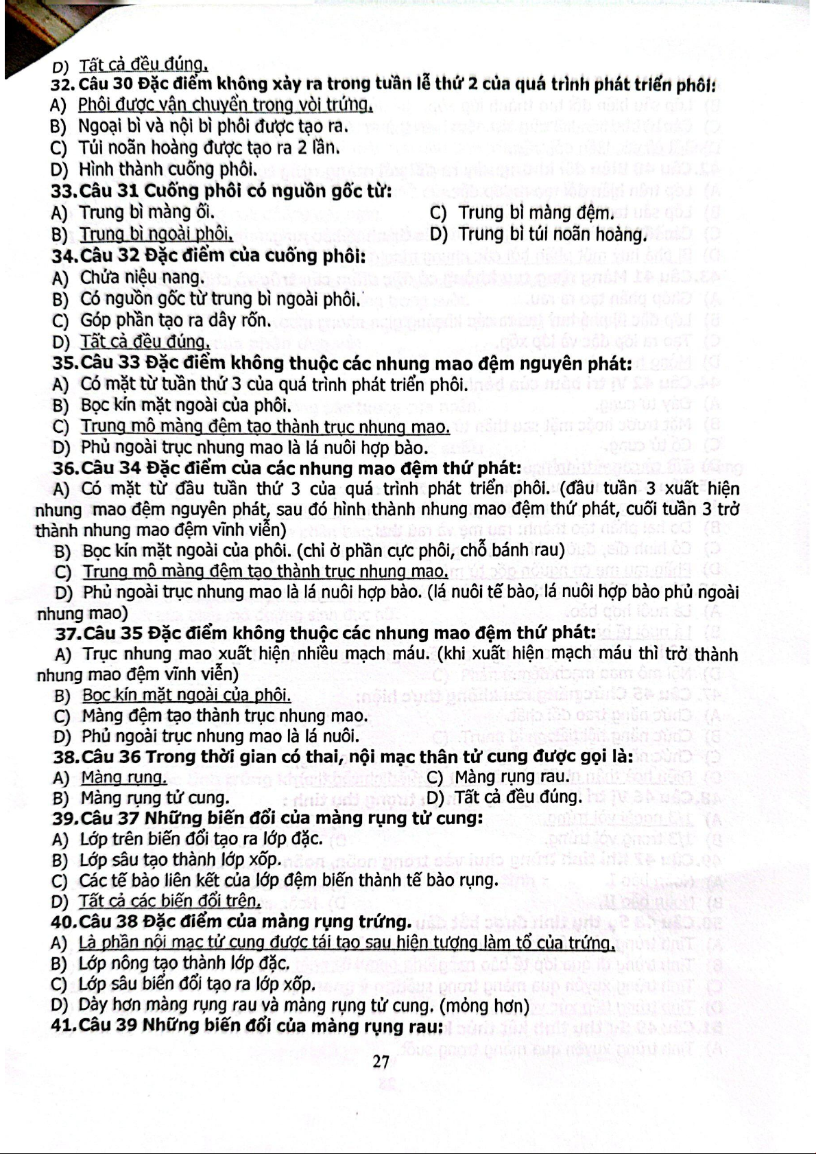 Câu hỏi trắc nghiệm Sinh học phát triển | Trường Đại học Khoa học tự nhiên, Đại học Quốc gia Thành phố Hồ Chí Minh