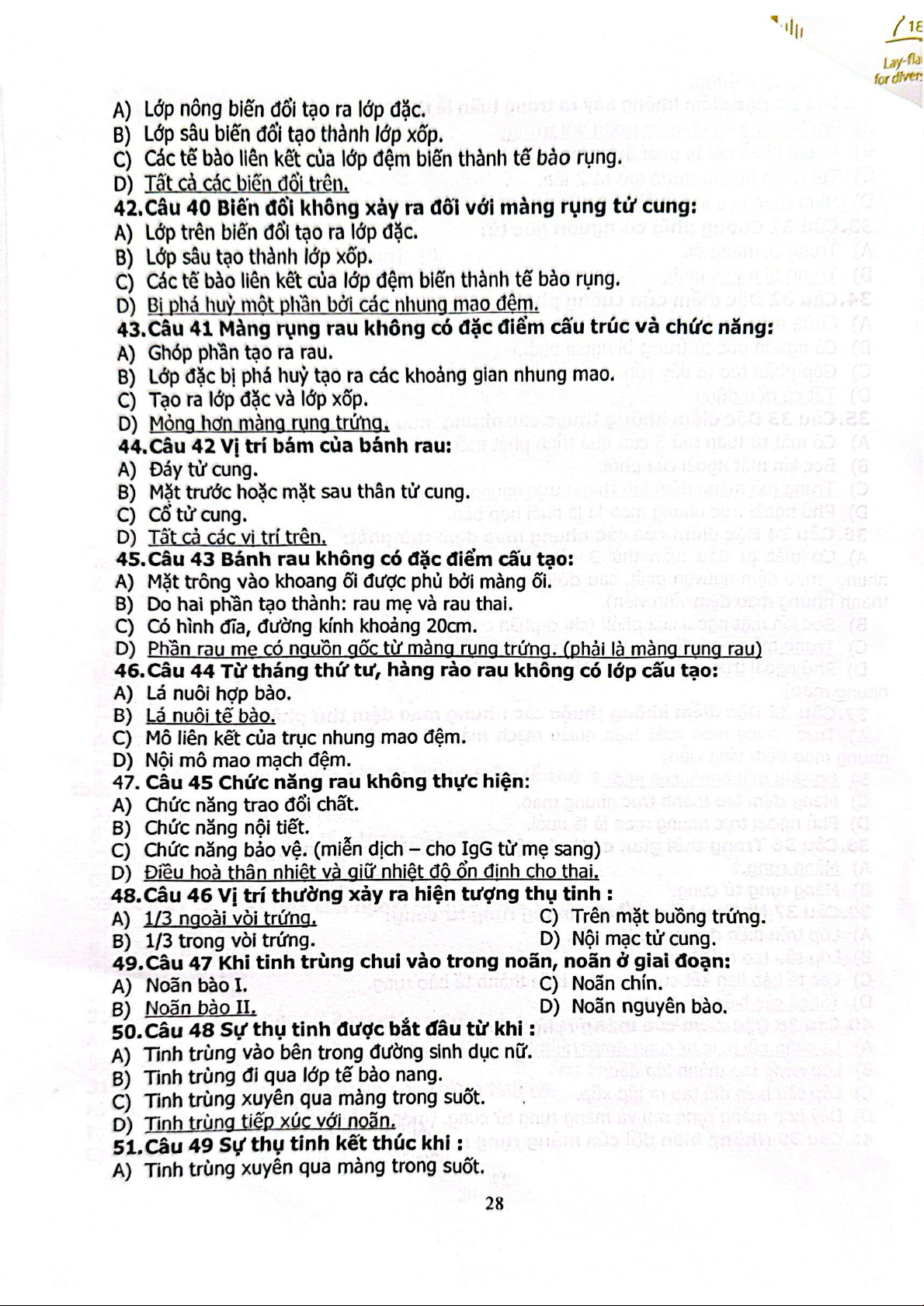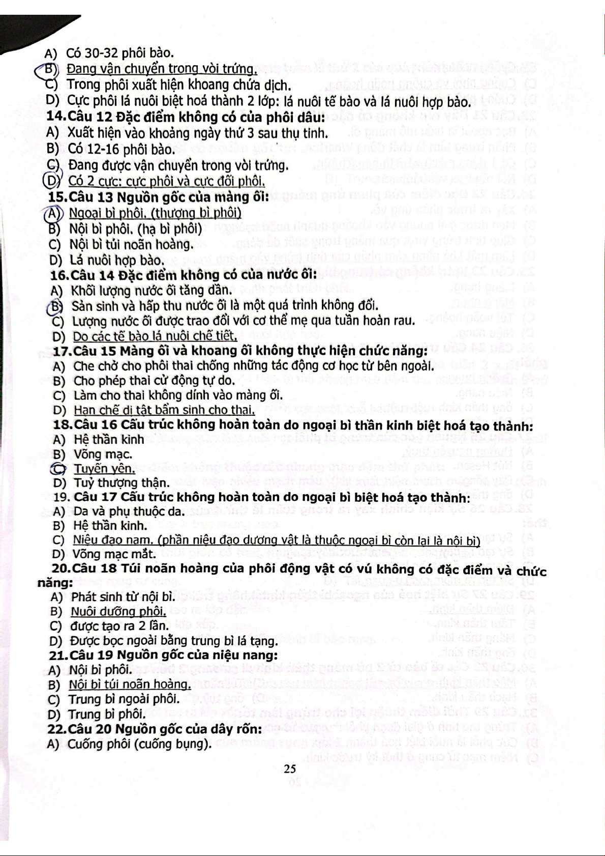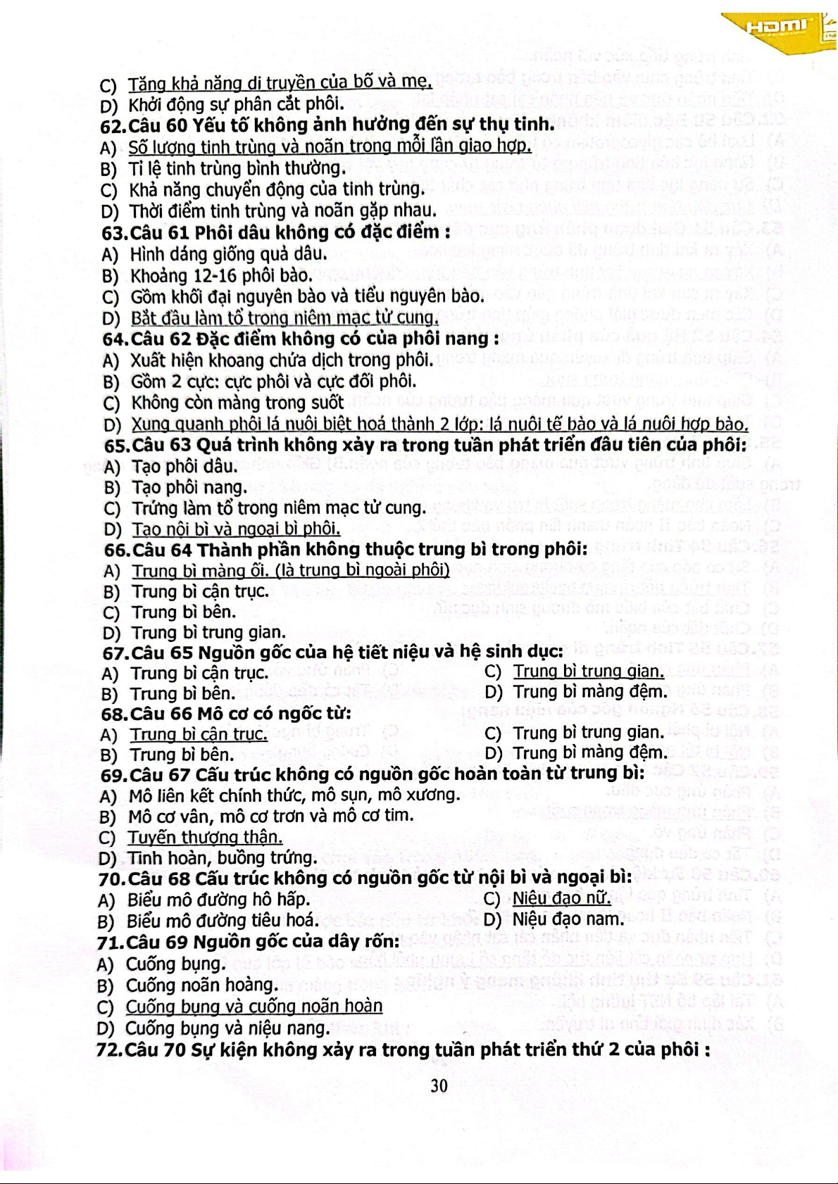 Câu hỏi trắc nghiệm Sinh học phát triển | Trường Đại học Khoa học tự nhiên, Đại học Quốc gia Thành phố Hồ Chí Minh