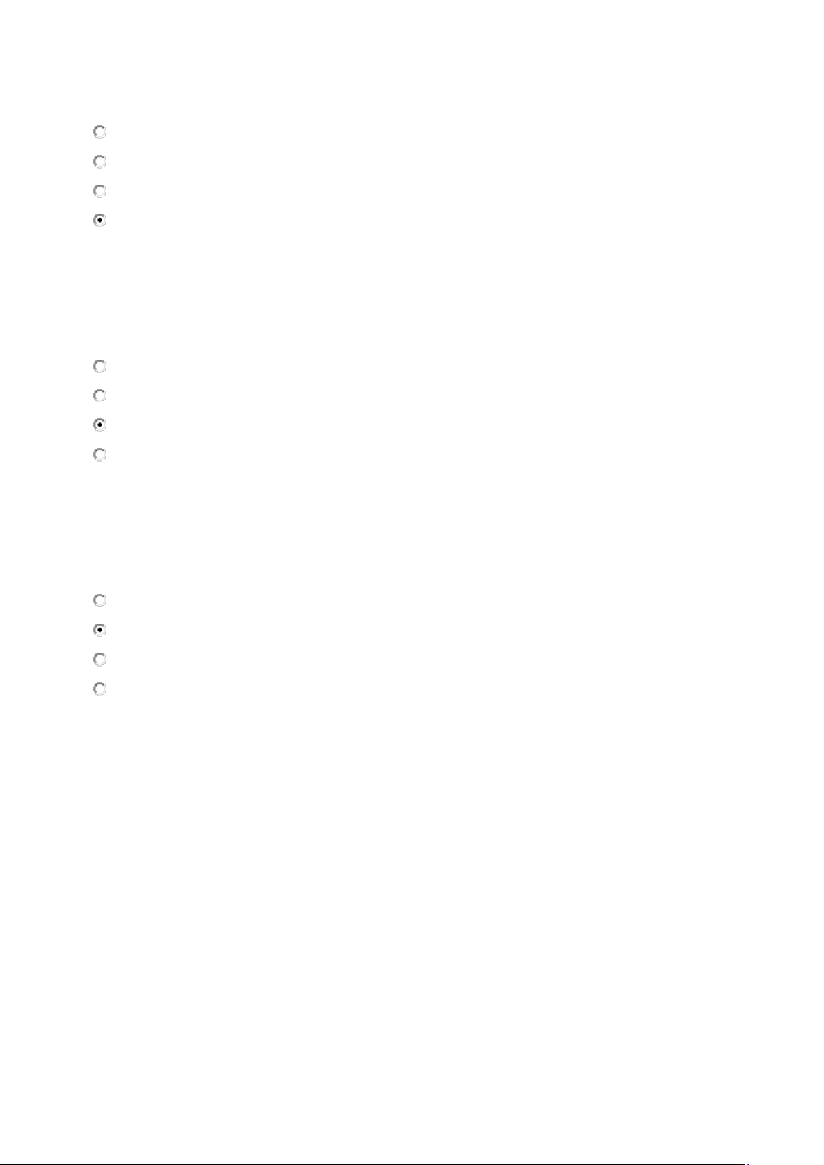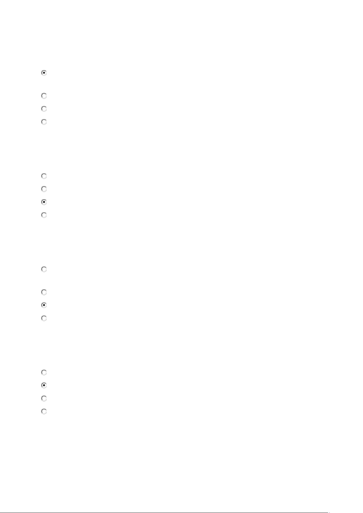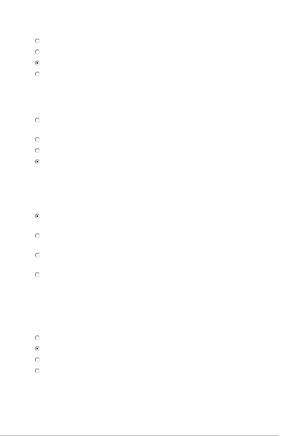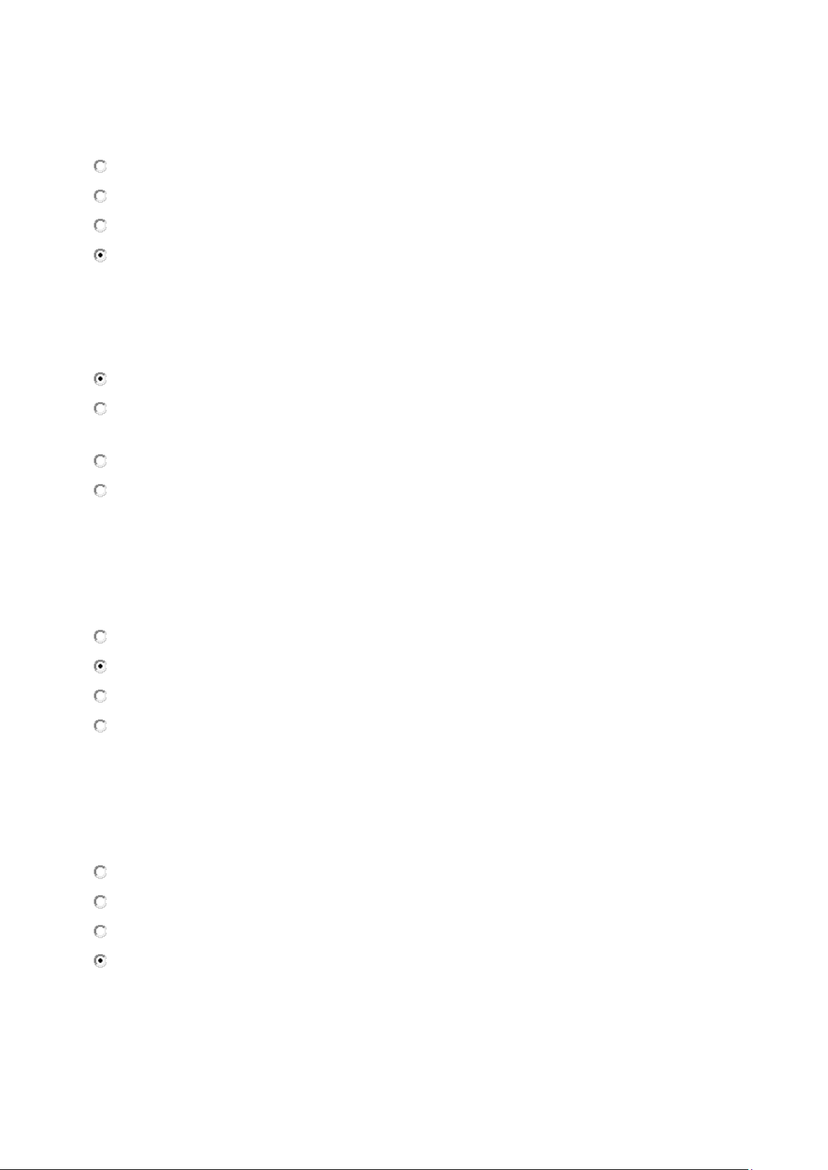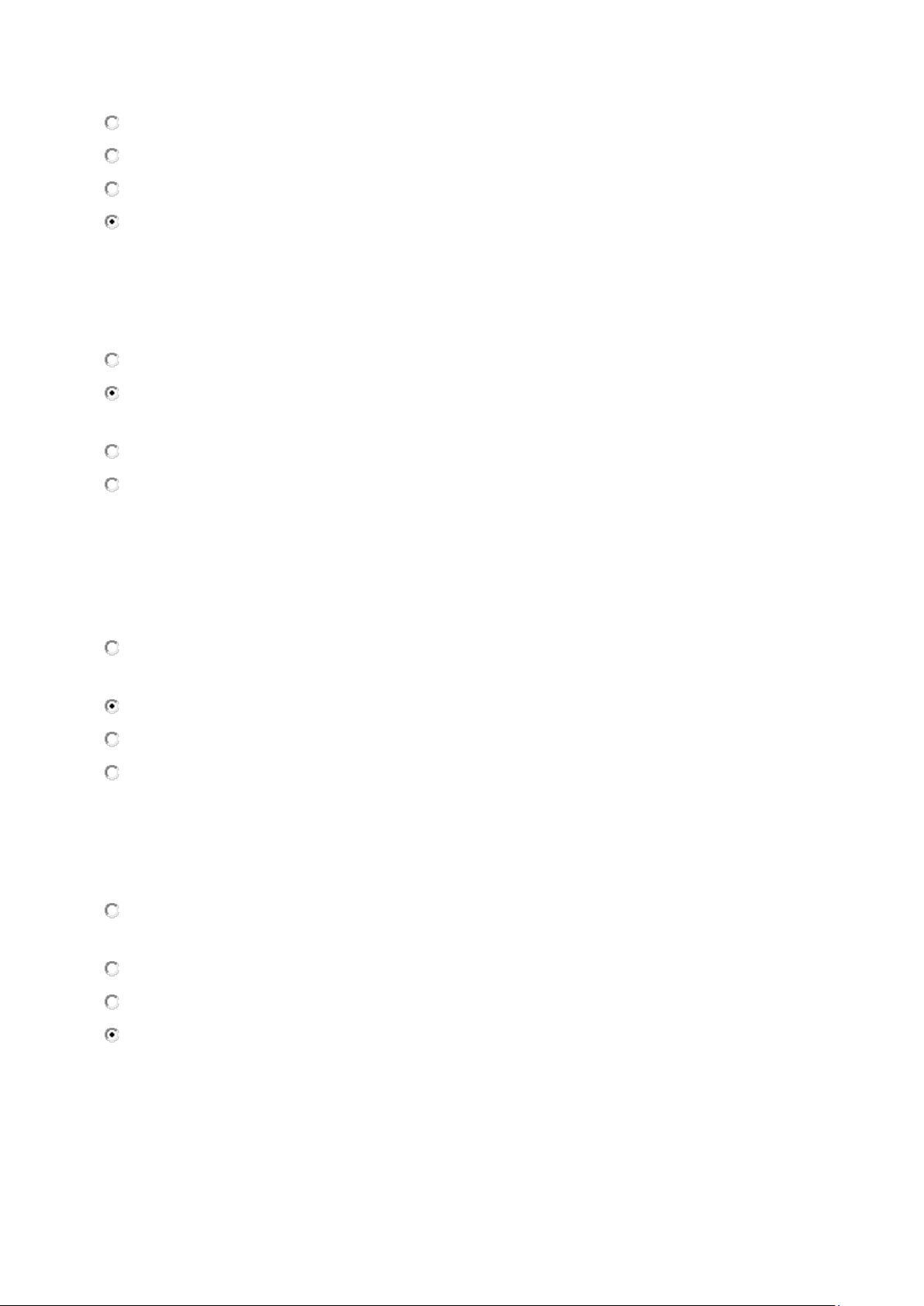 16. Những phân tử nào dưới đây không đi qua được lớp lipid kép của màng sinh chất? lOMoAR cPSD| 46342576 Select one: a. CO2, O2, H20 b. Benzen, K+, Na+, Ca2+,… c. Benzen, glucose