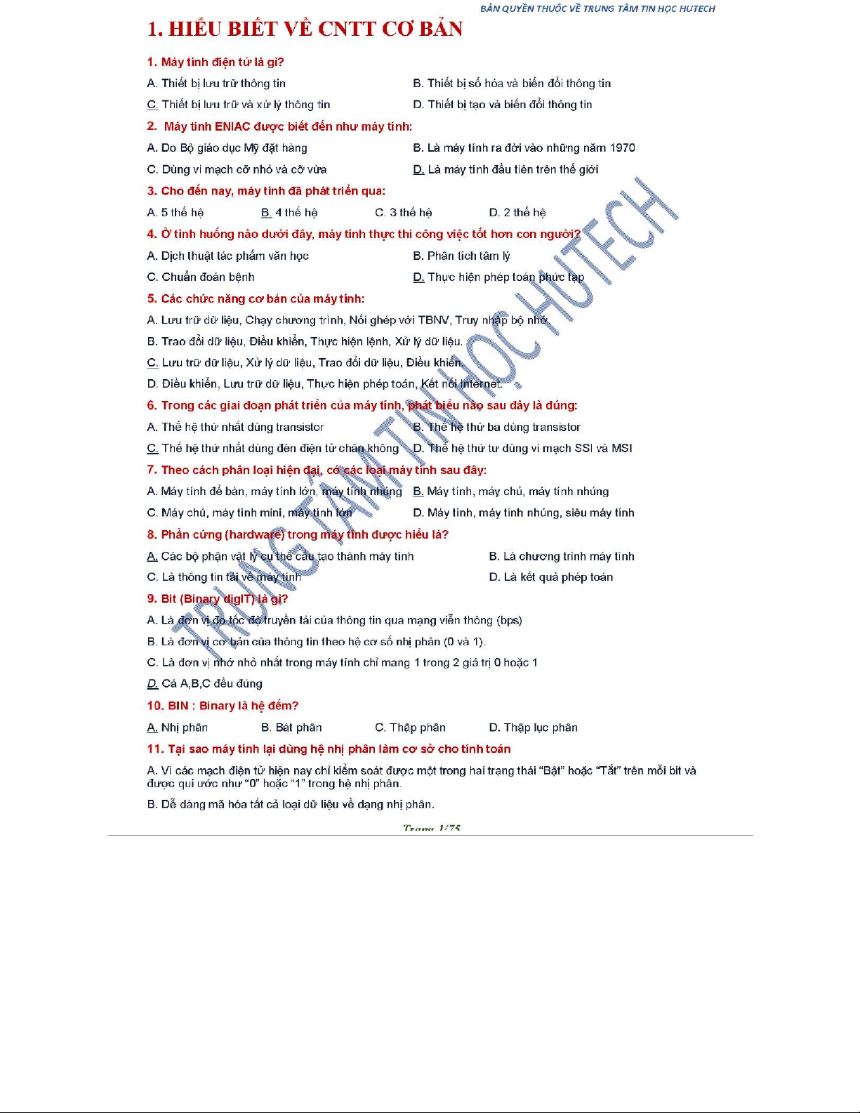 Môn: Nhập môn Công nghệ thông tin 30 tài liệu